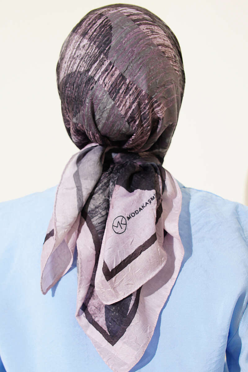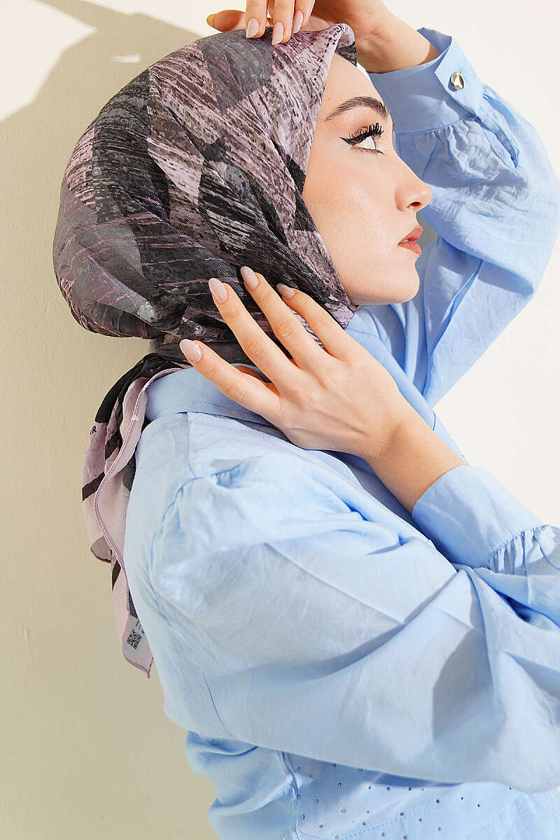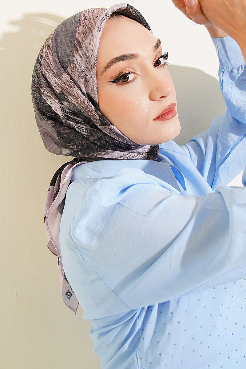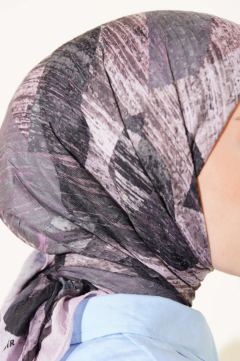 Karışık Desen Bambu Kraş Ayda Eşarp Gri