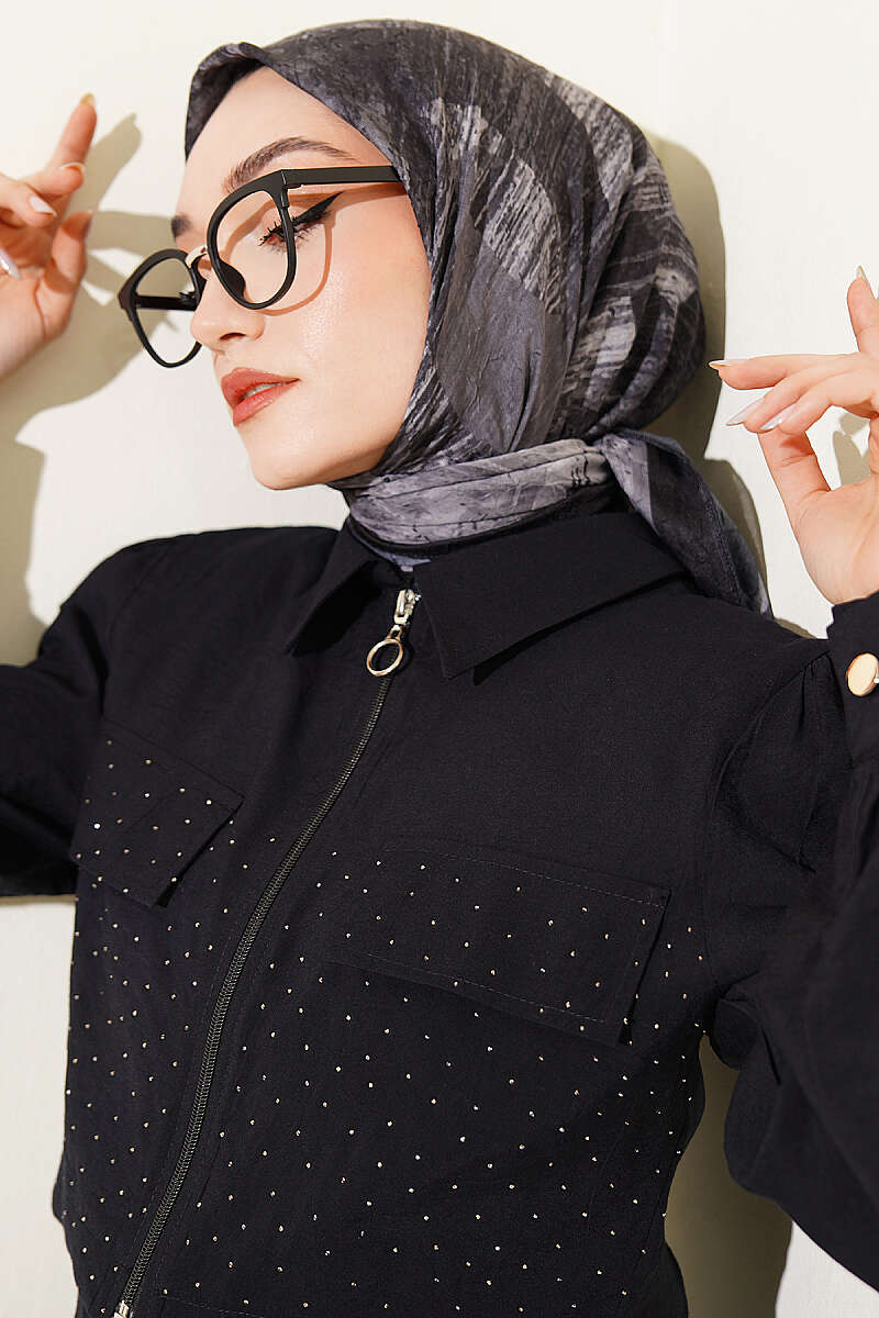 Karışık Desen Bambu Kraş Ayda Eşarp Siyah