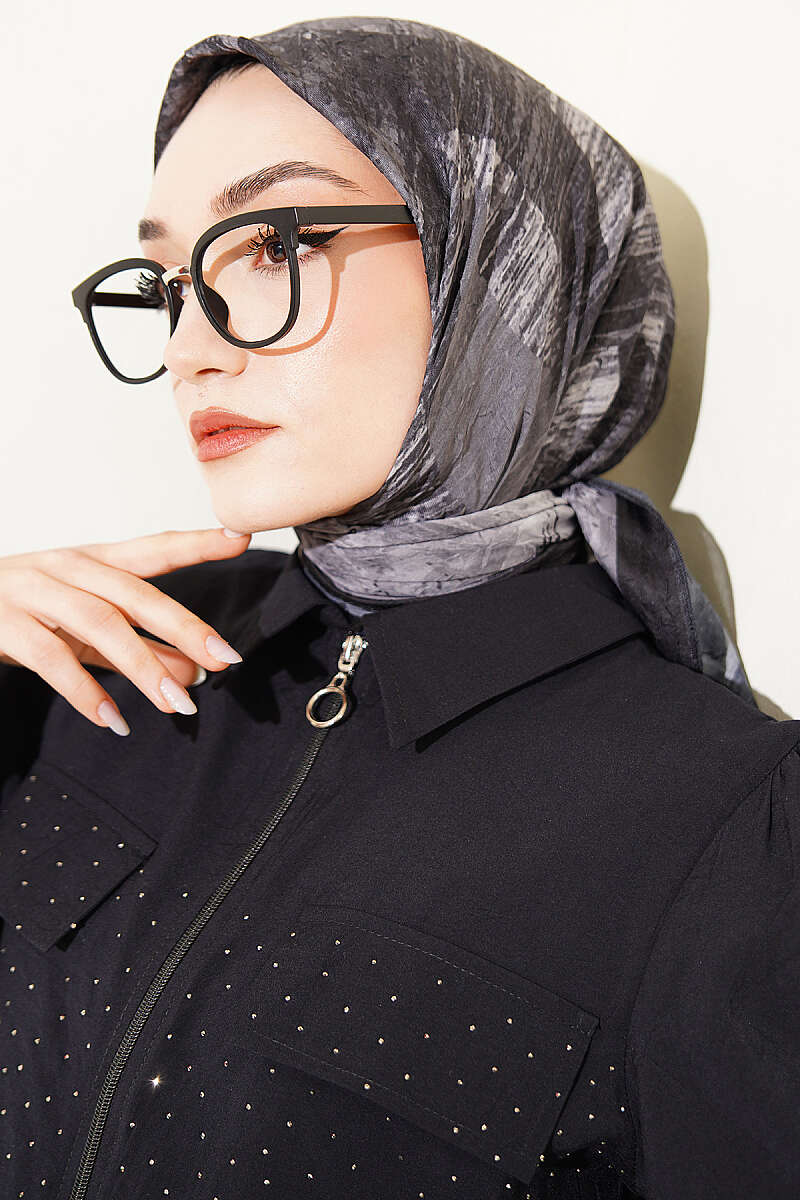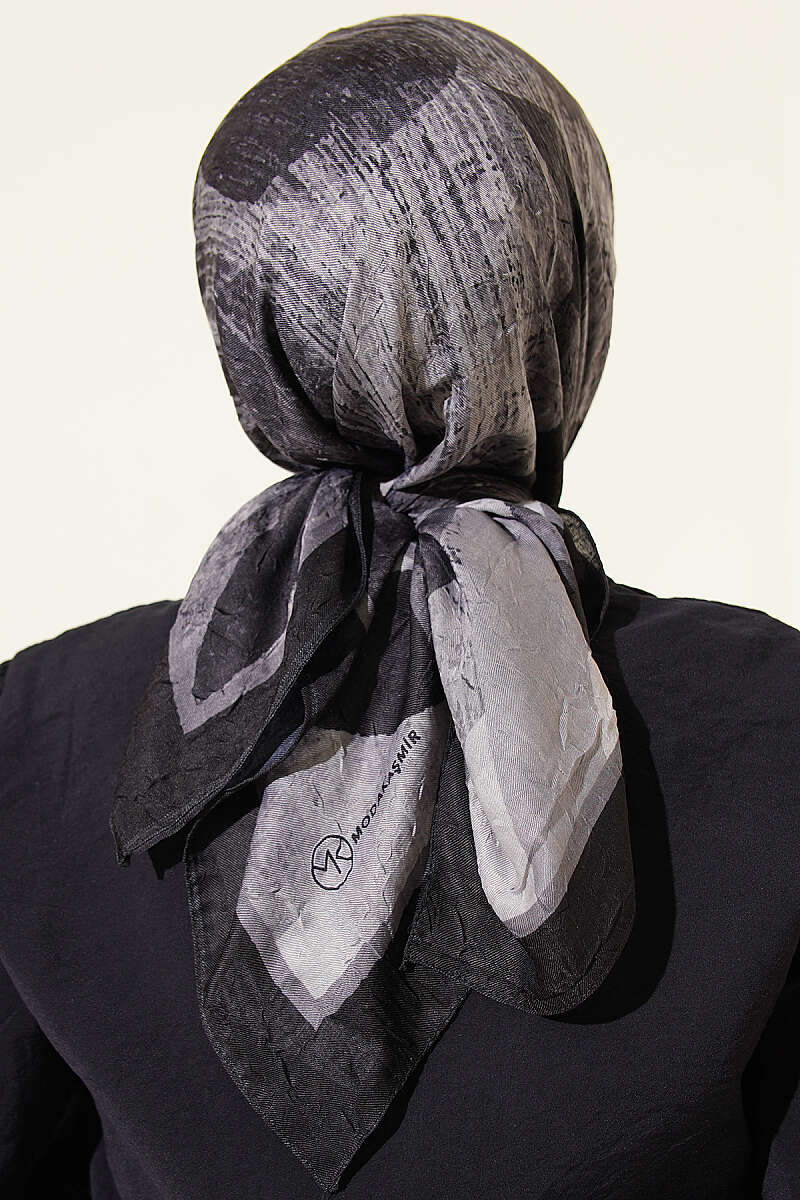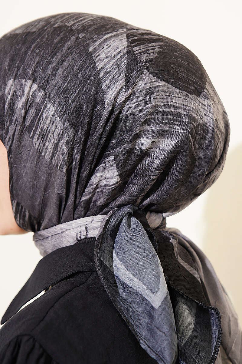 Karışık Desen Bambu Kraş Ayda Eşarp Gri