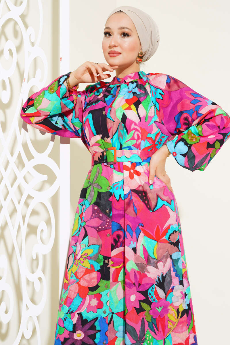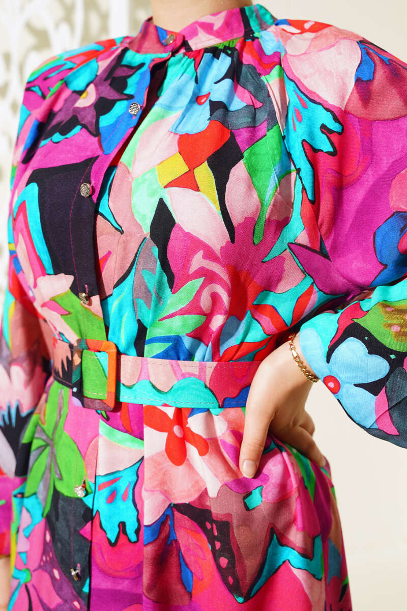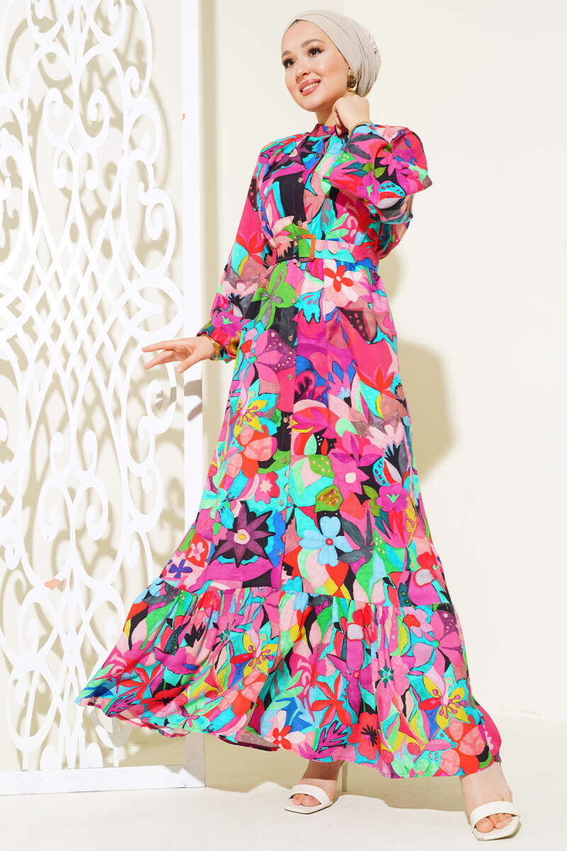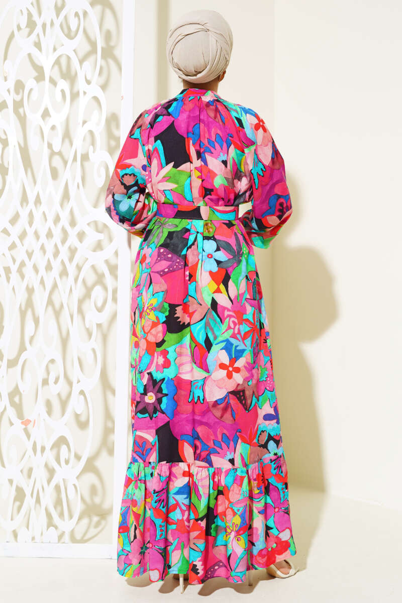 Kolları Fiyonk Detaylı Selanik Elbise Taş