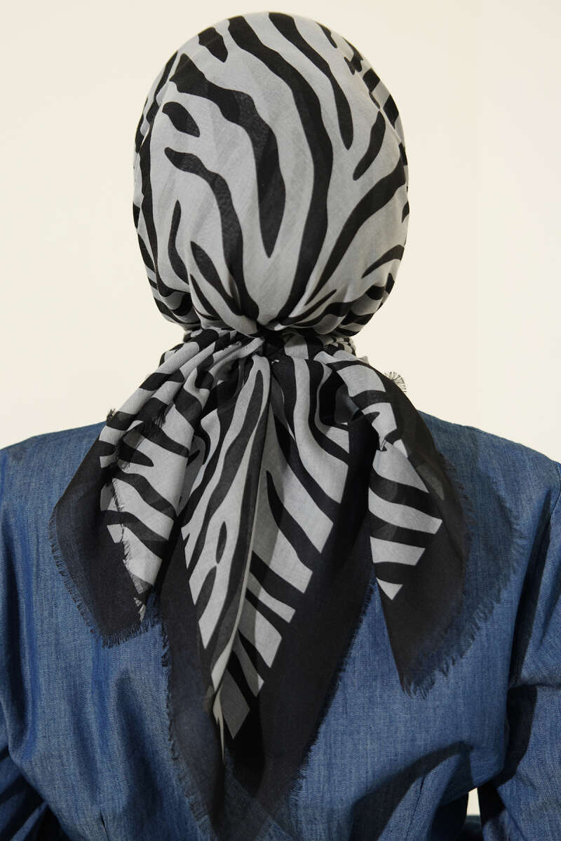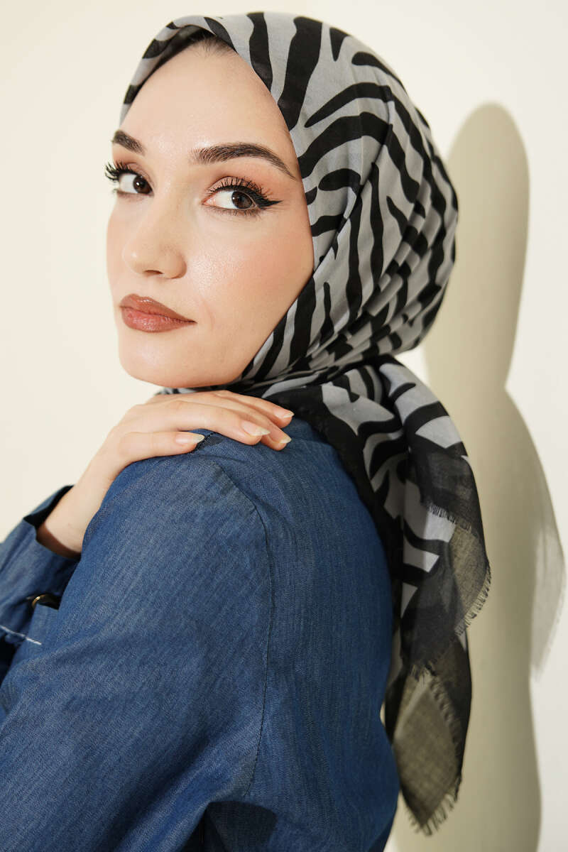 Şeritli Bambu Kraş Eşarp Siyah