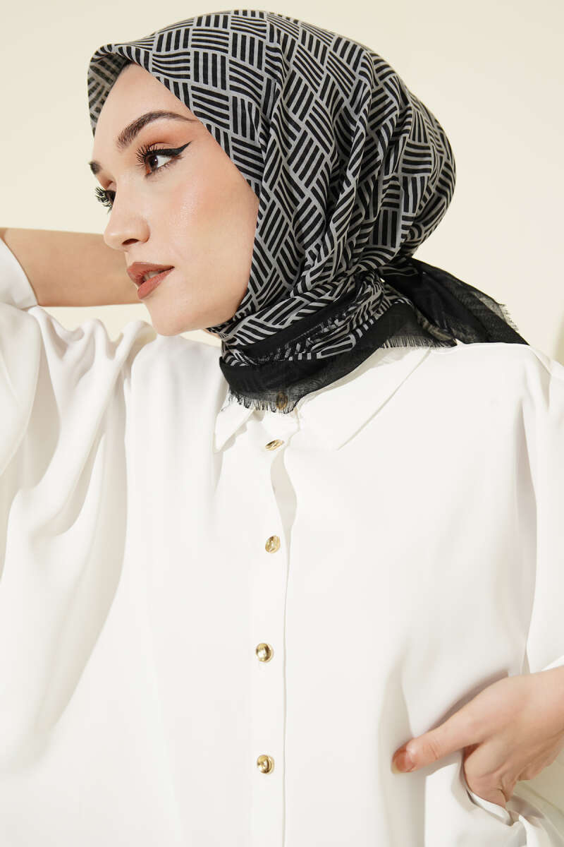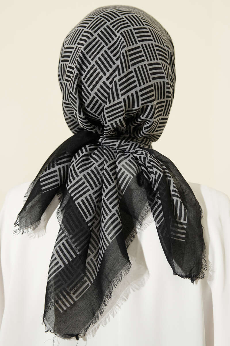 Şeritli Bambu Kraş Eşarp Siyah