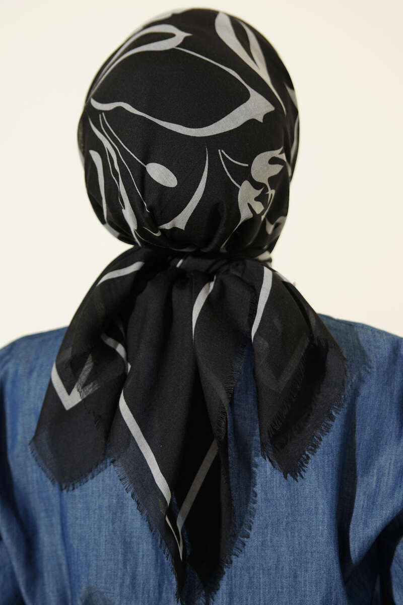 Şeritli Bambu Kraş Eşarp Siyah