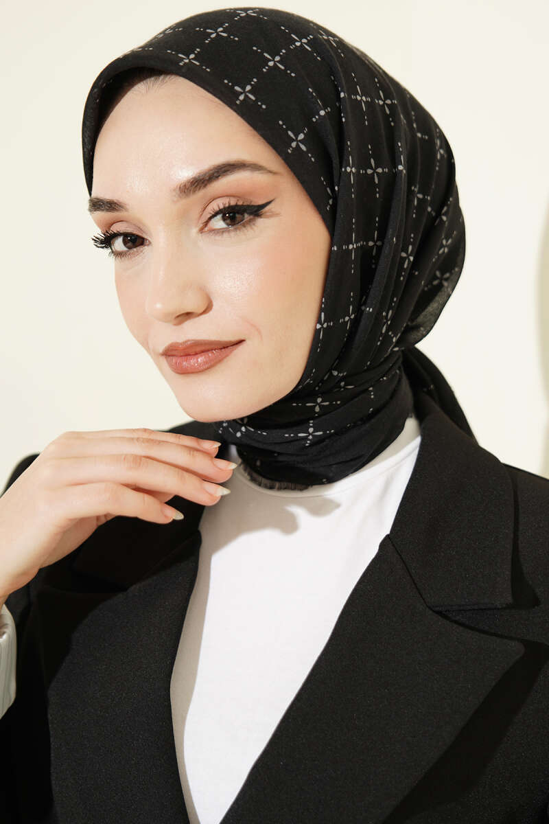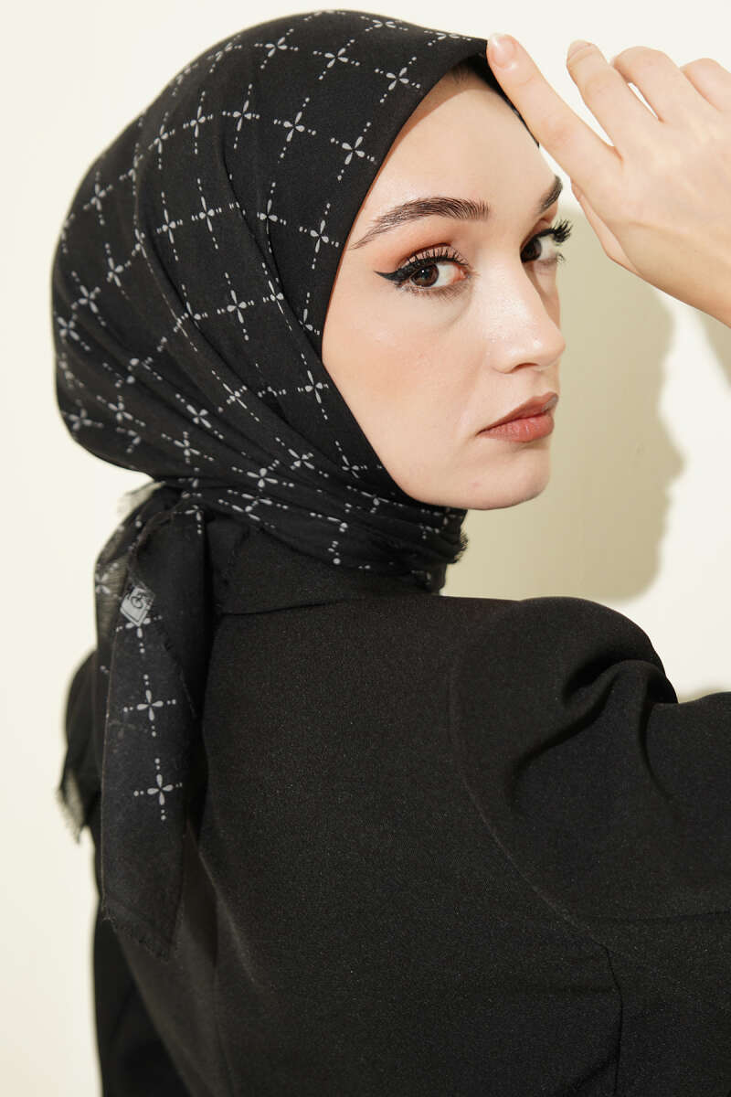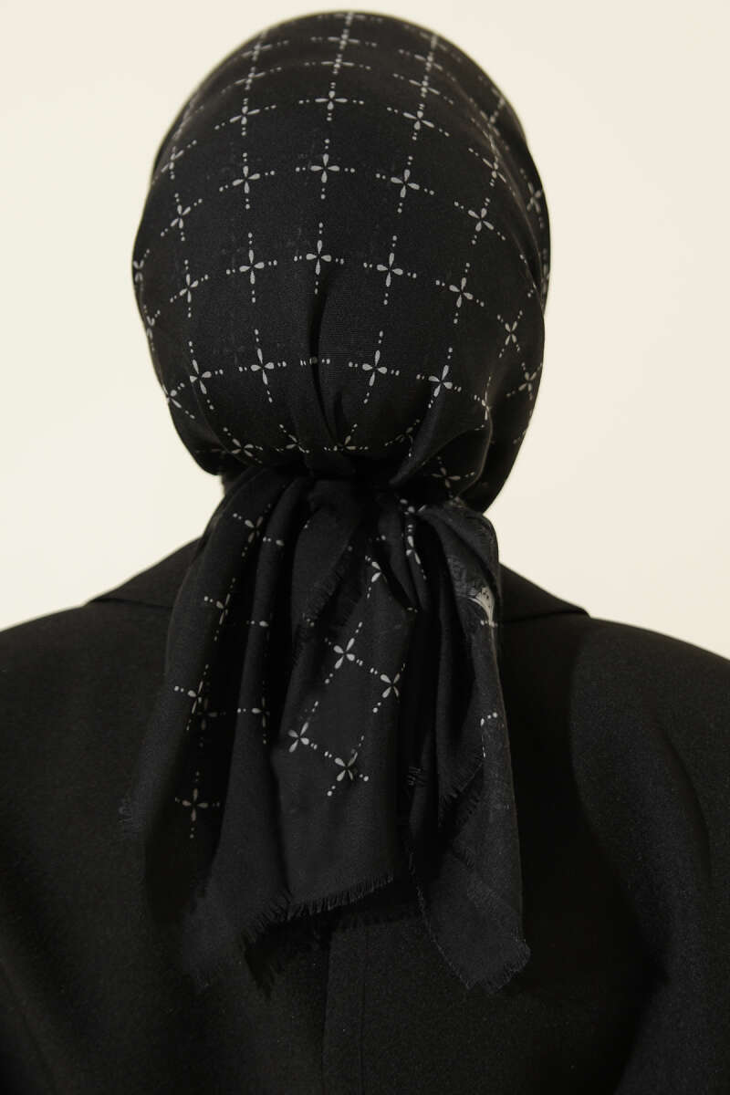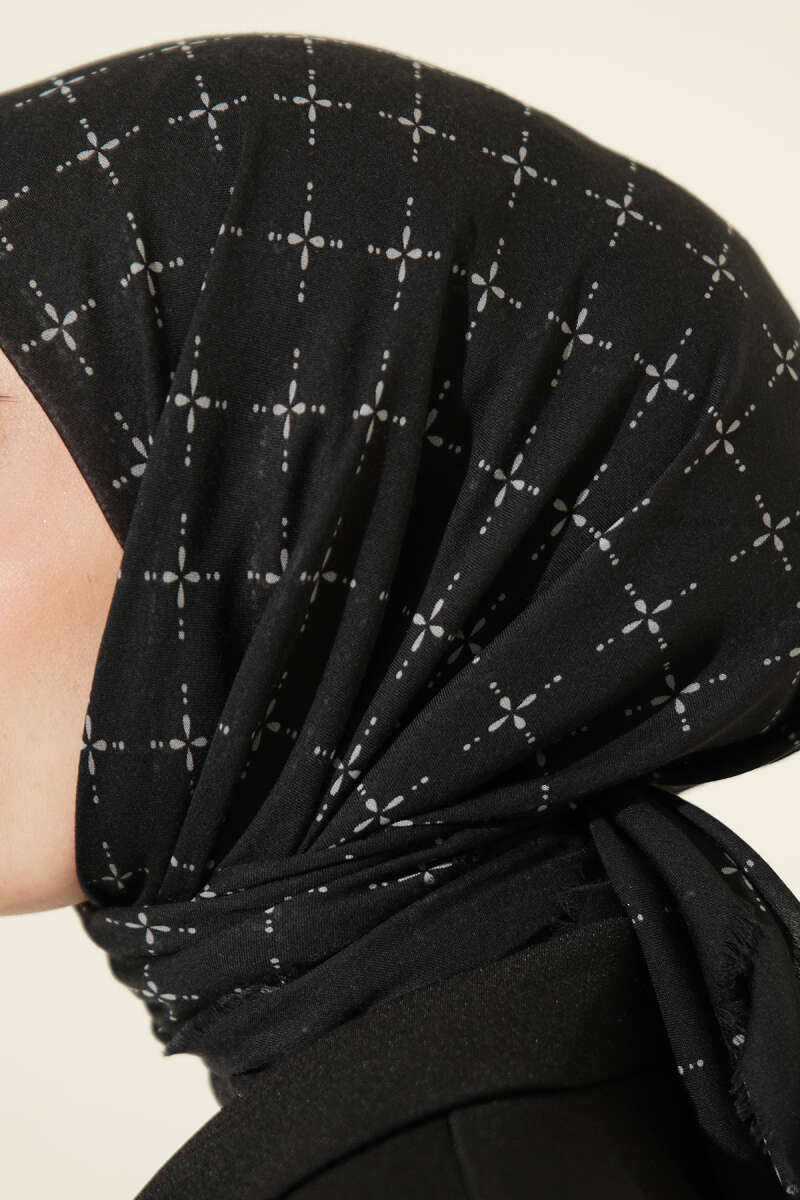 Şeritli Bambu Kraş Eşarp Siyah