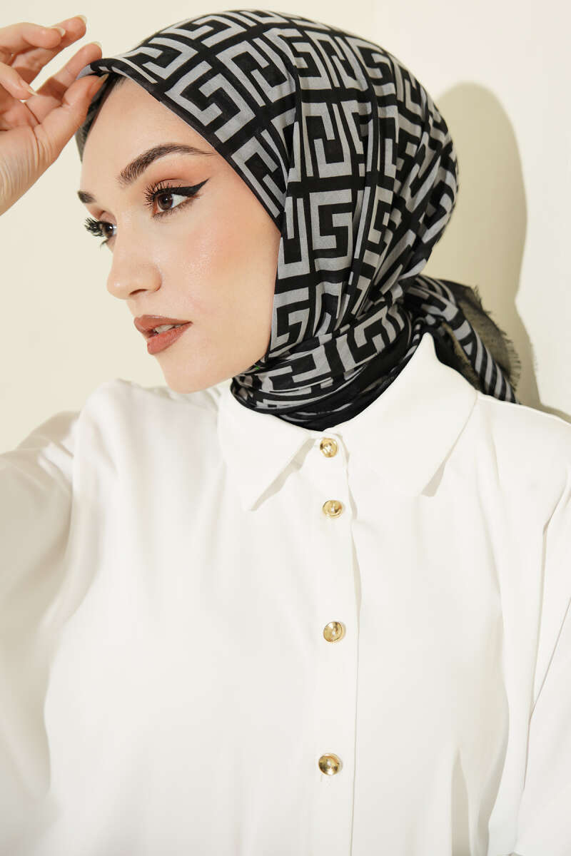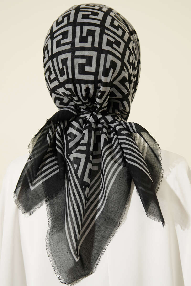 Şeritli Bambu Kraş Eşarp Siyah