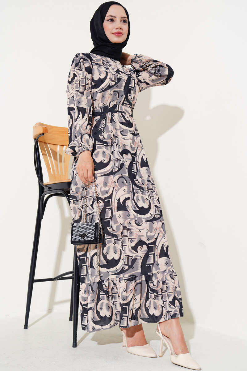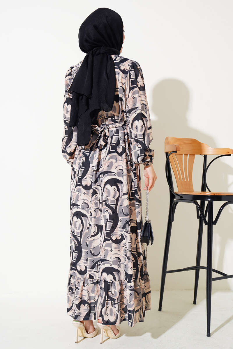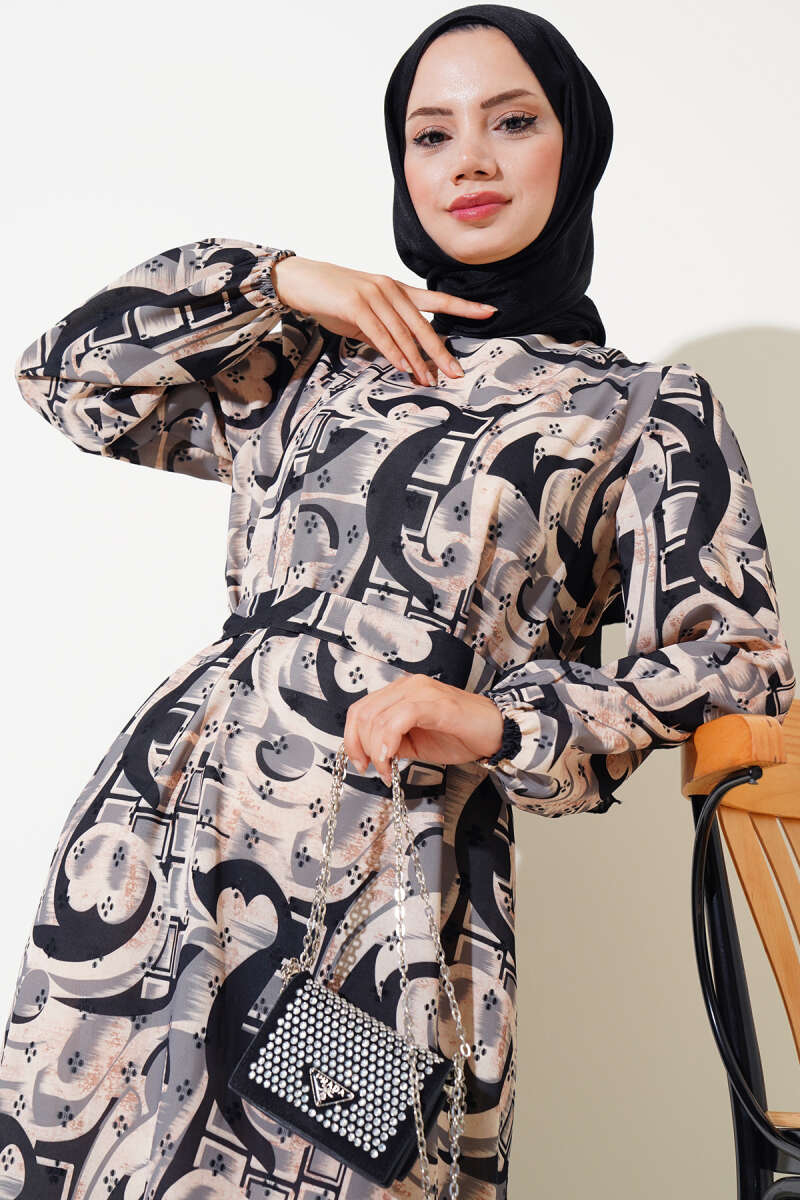 Dik Fitilli Kuşaklı Basic Elbise Bej