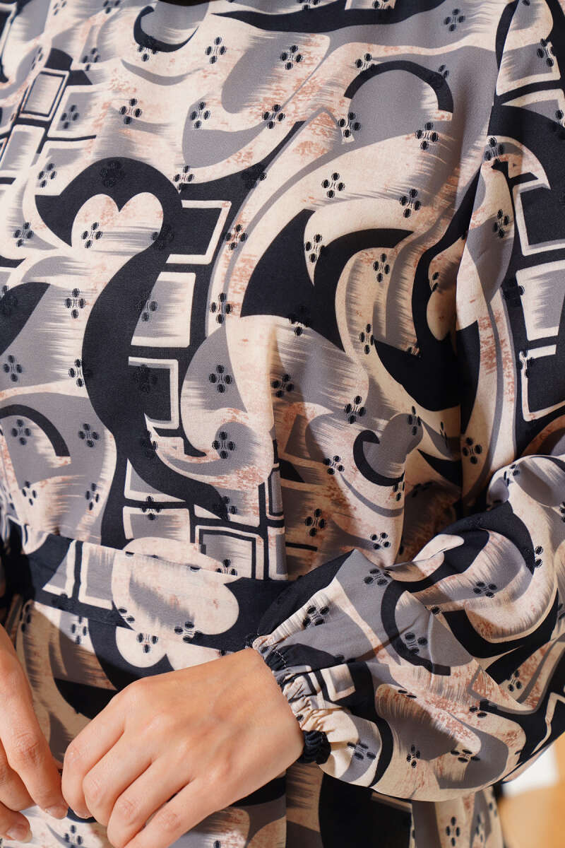 Bisiklet Yaka Uzun Kol Desenli Pijama Takımı Latte