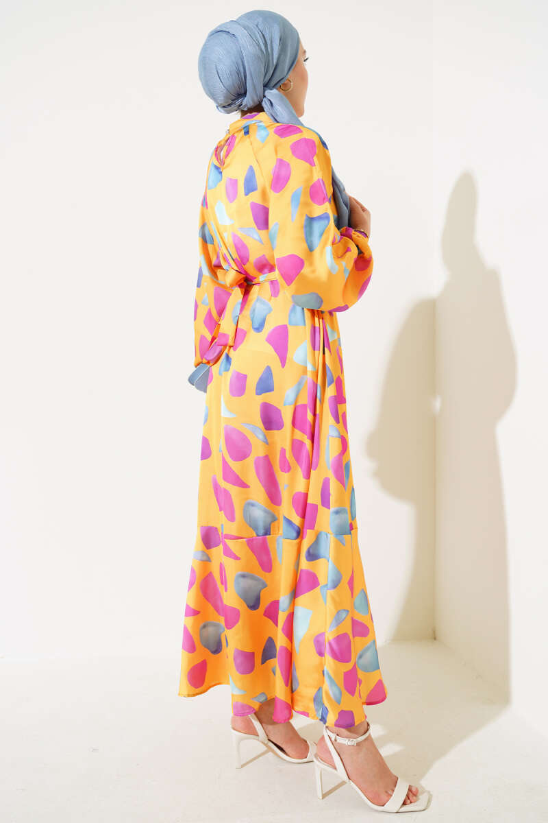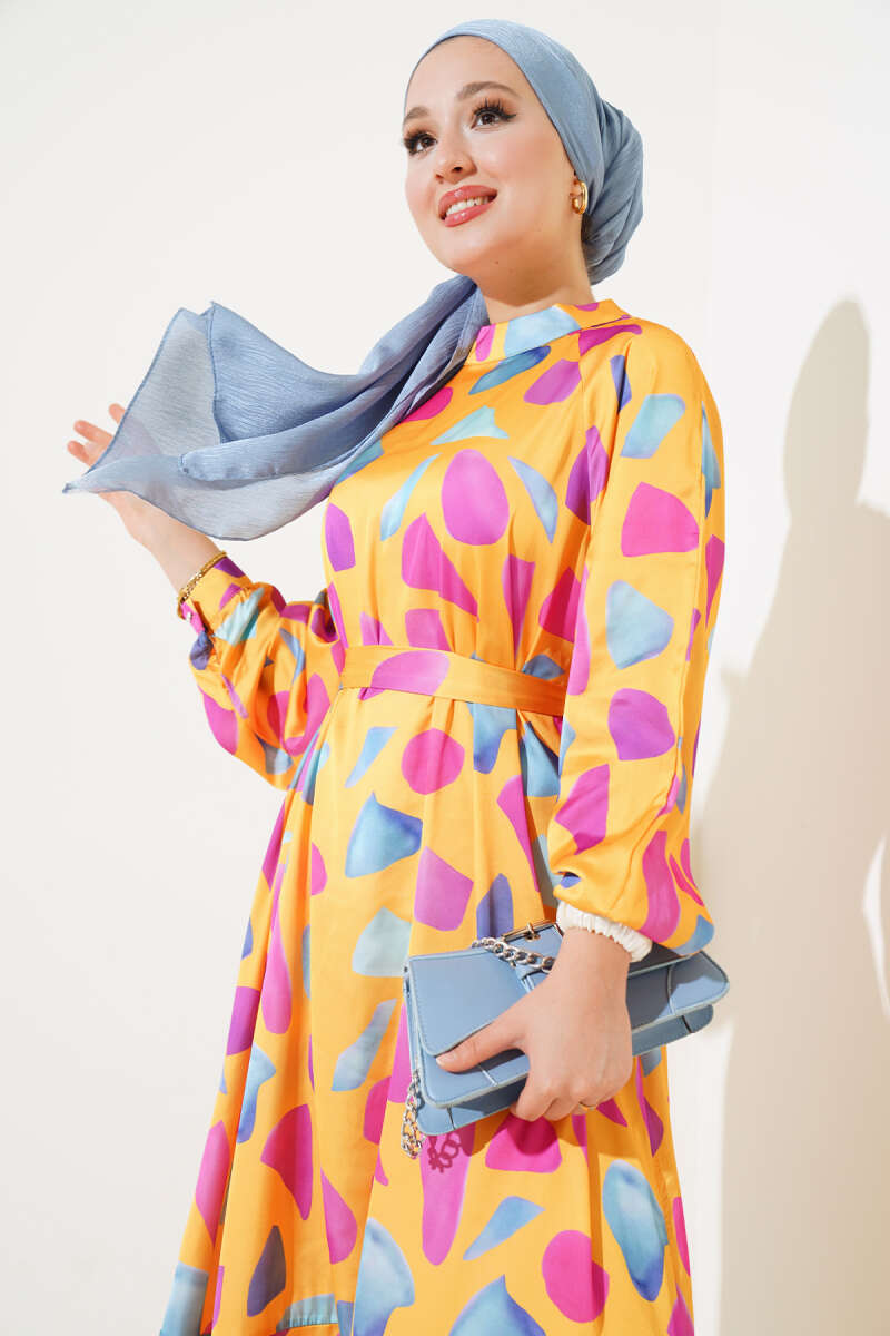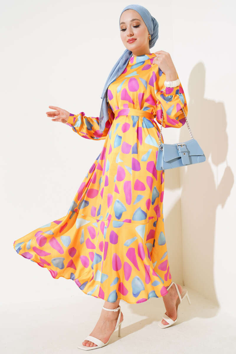 Paisley Desen Bel Lastikli Elbise Lacivert