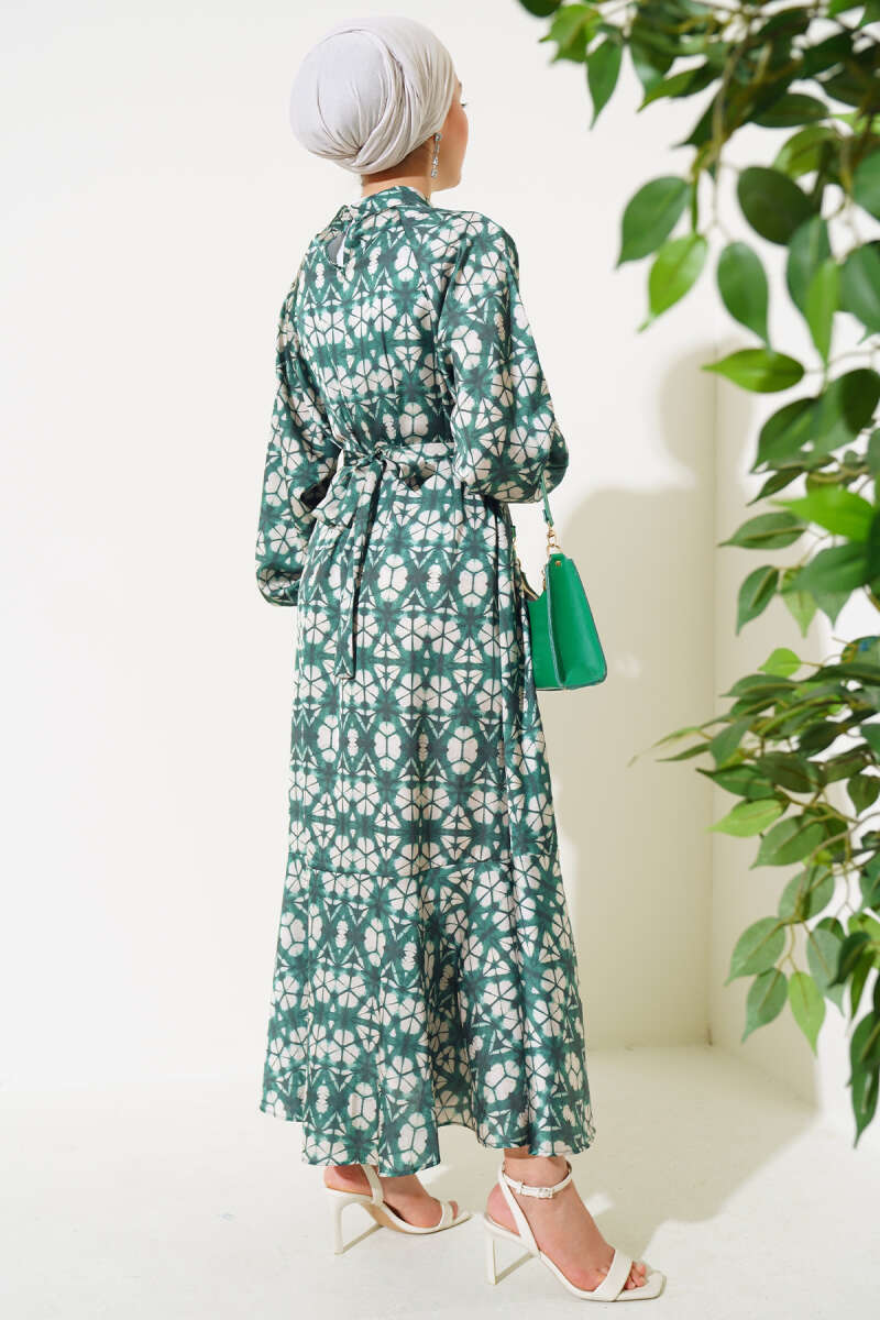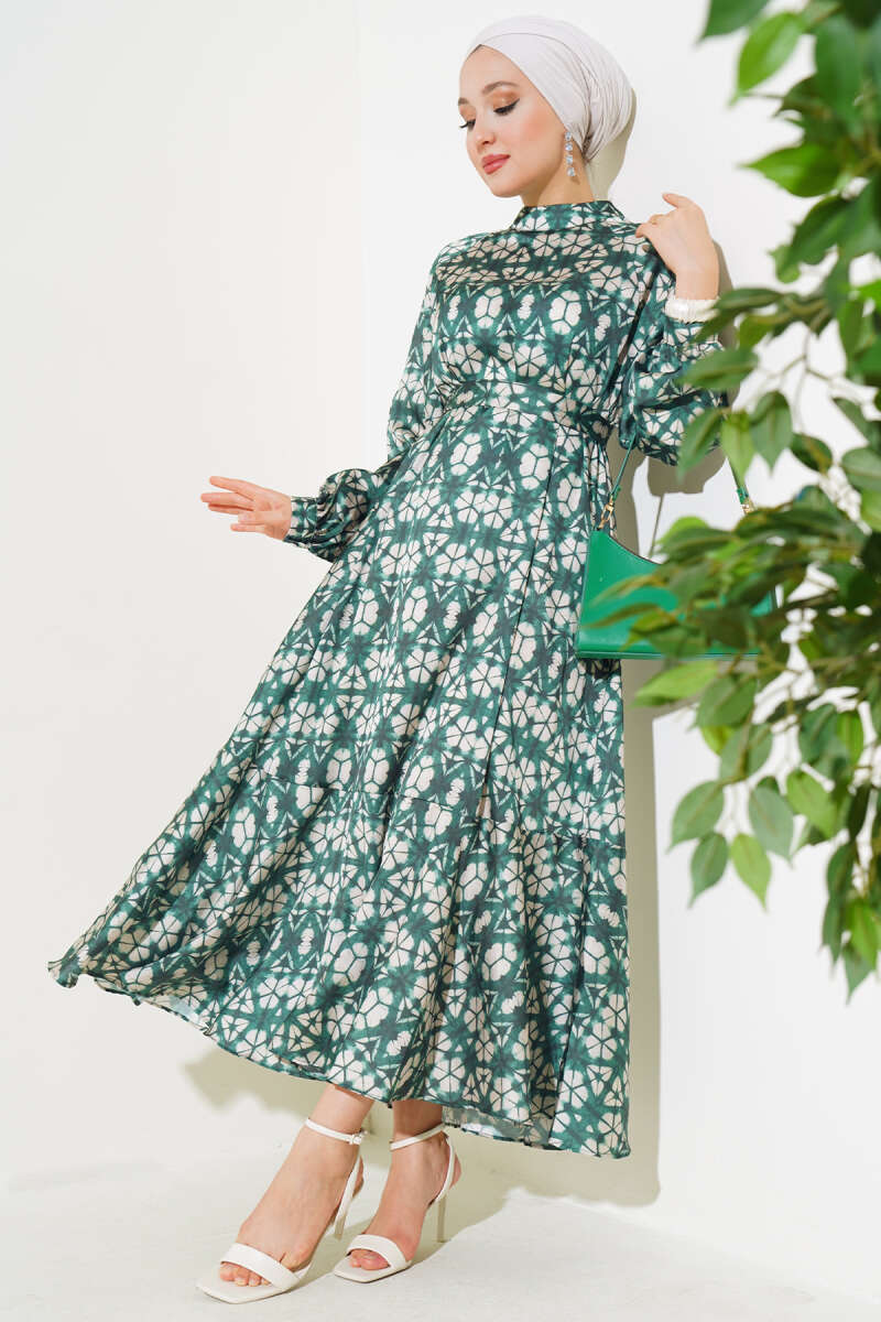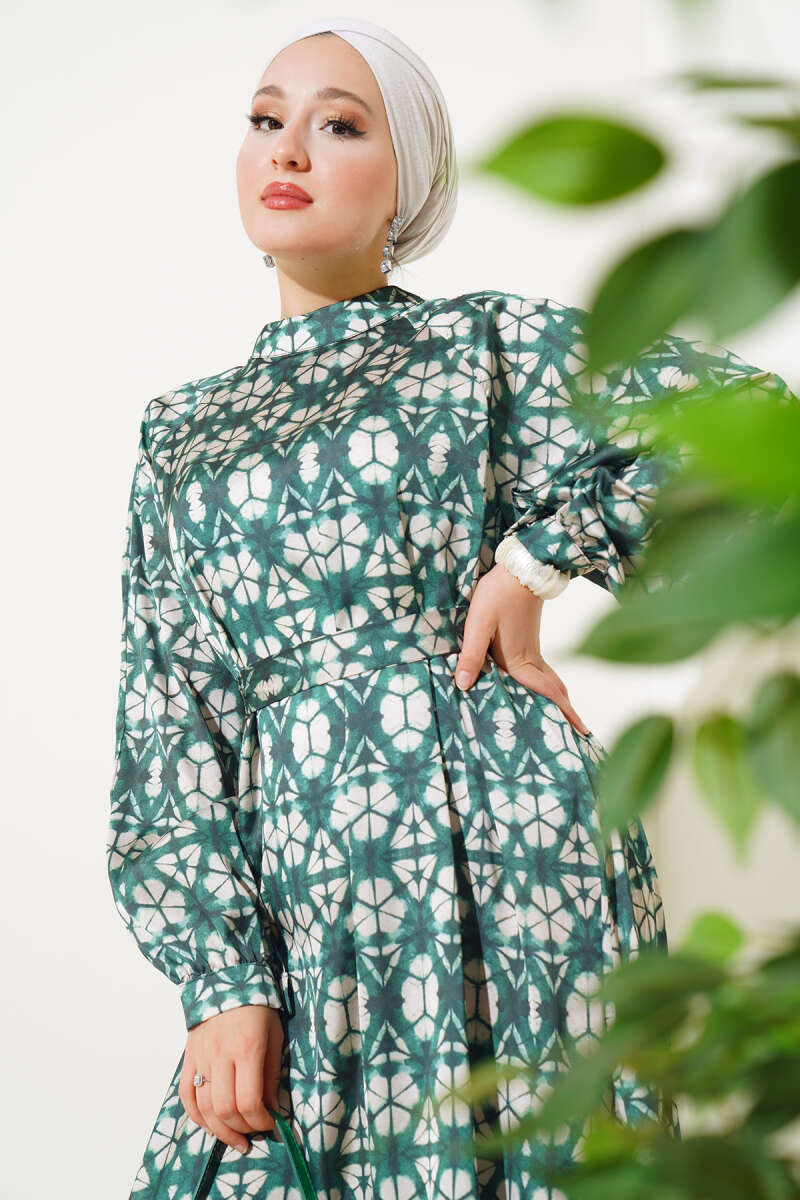 Paisley Desen Bel Lastikli Elbise Lacivert