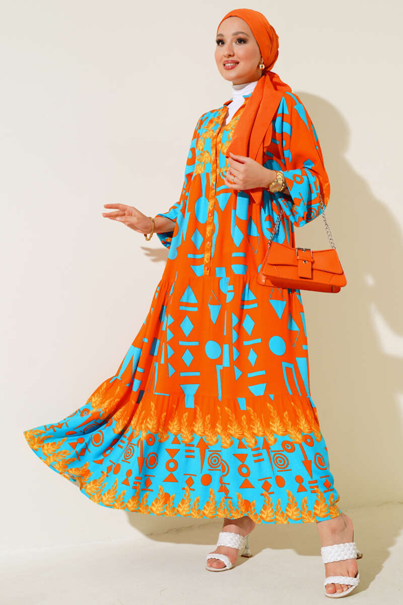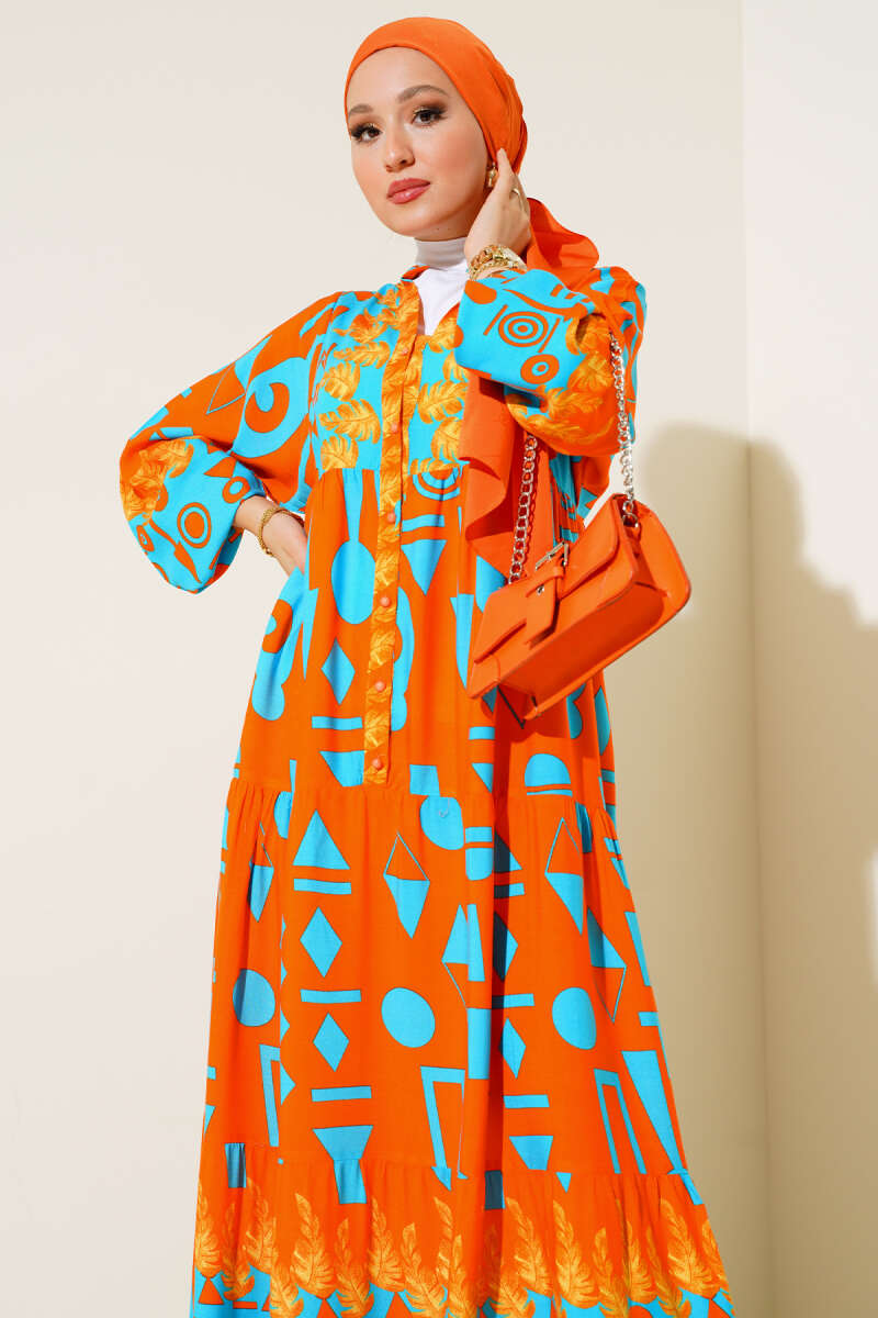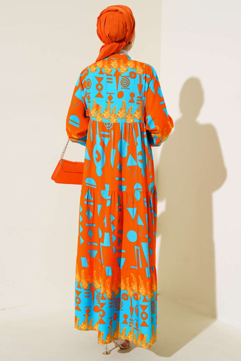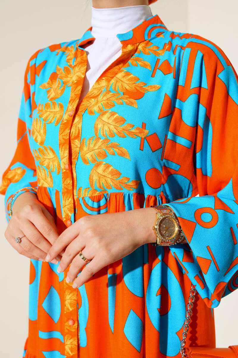 Yarım Düğmeli Kot Elbise Koyu Mavi