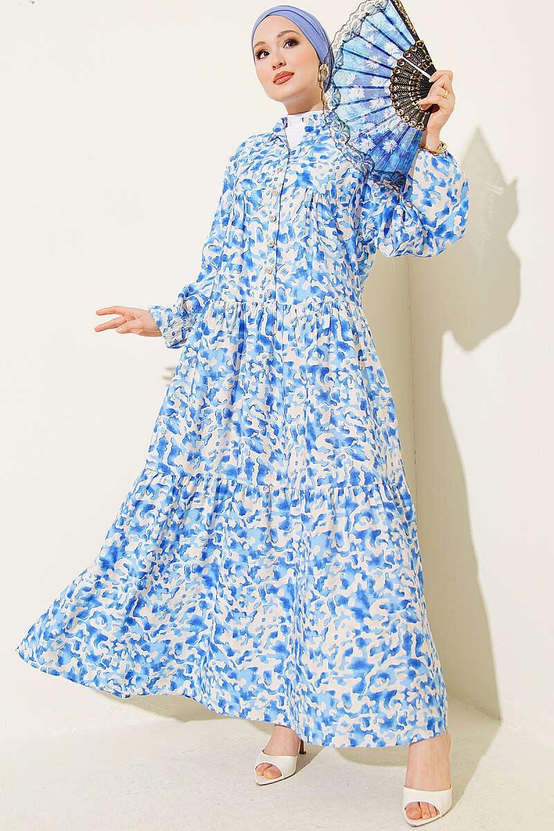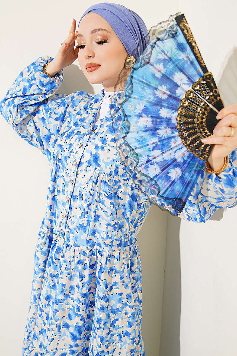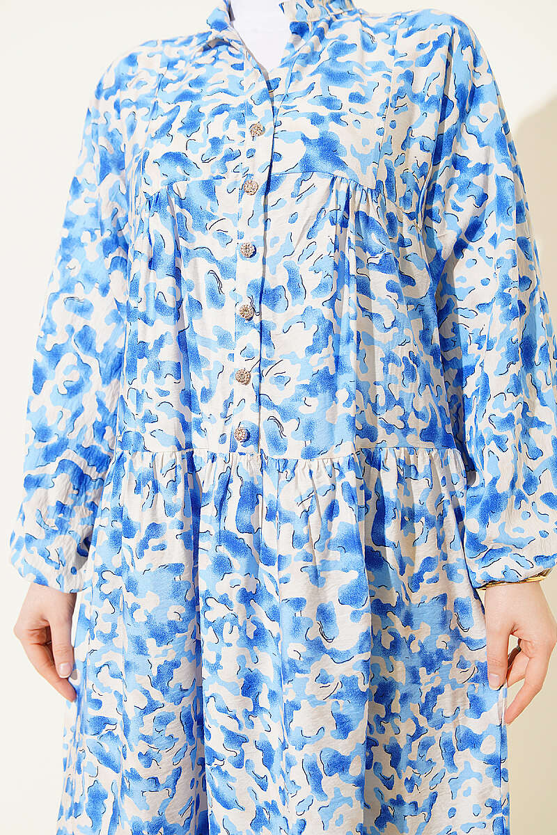 Karışık Desen Taş Düğmeli Elbise Asorti 10
