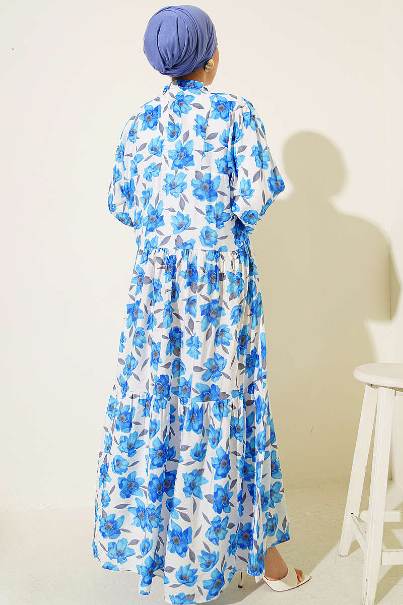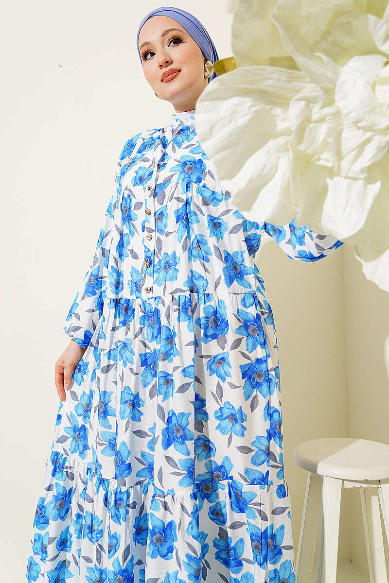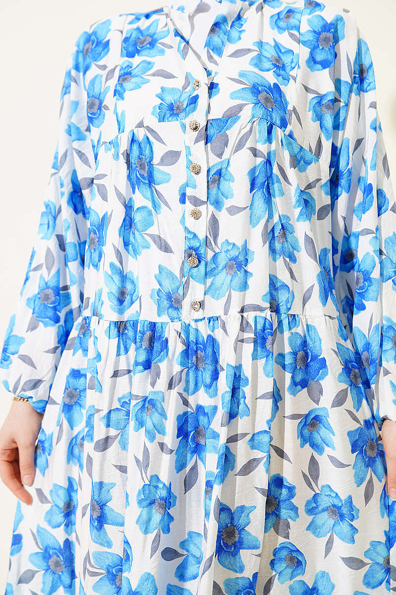 Karışık Desen Taş Düğmeli Elbise Asorti 13