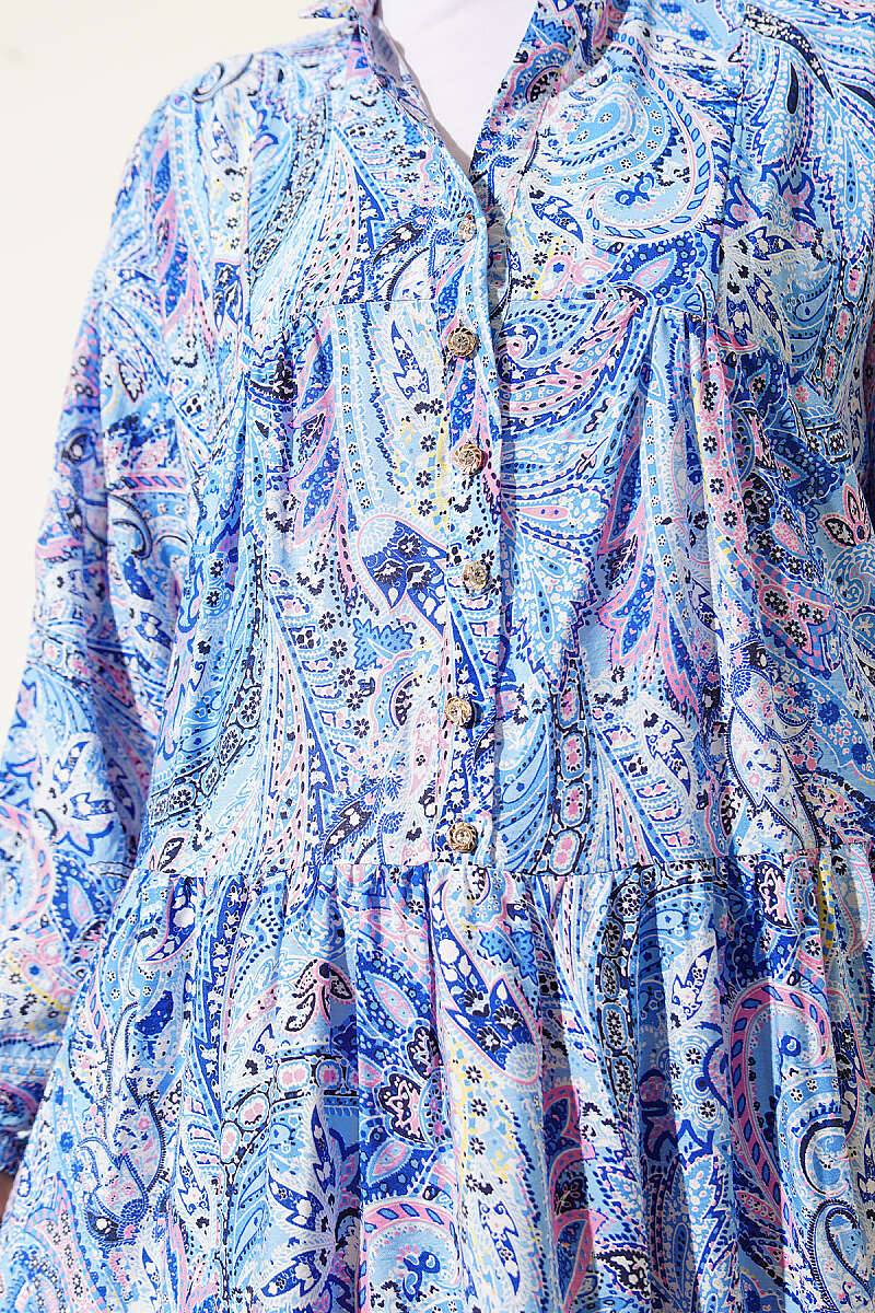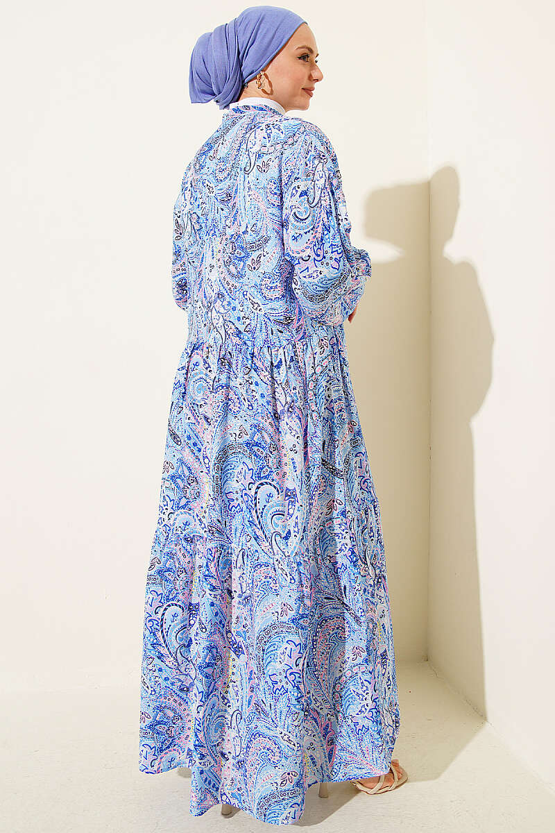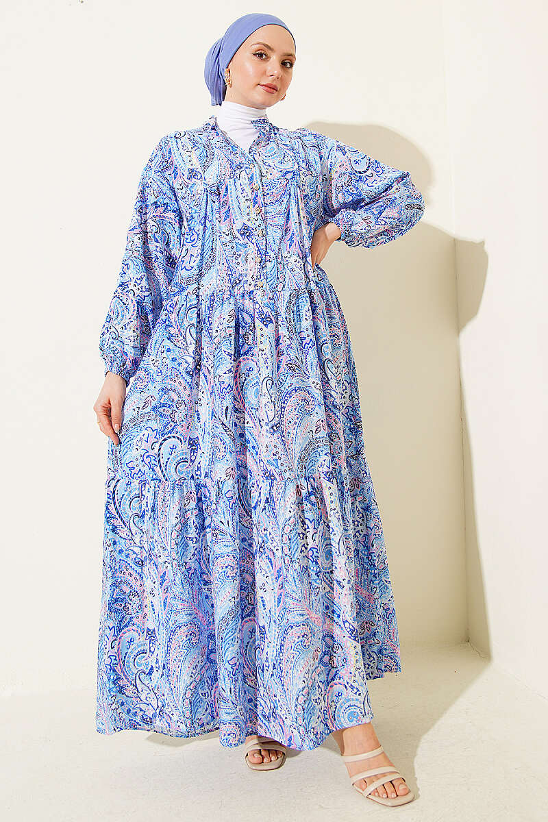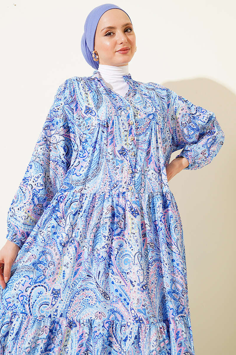 Karışık Desen Taş Düğmeli Elbise Asorti 4