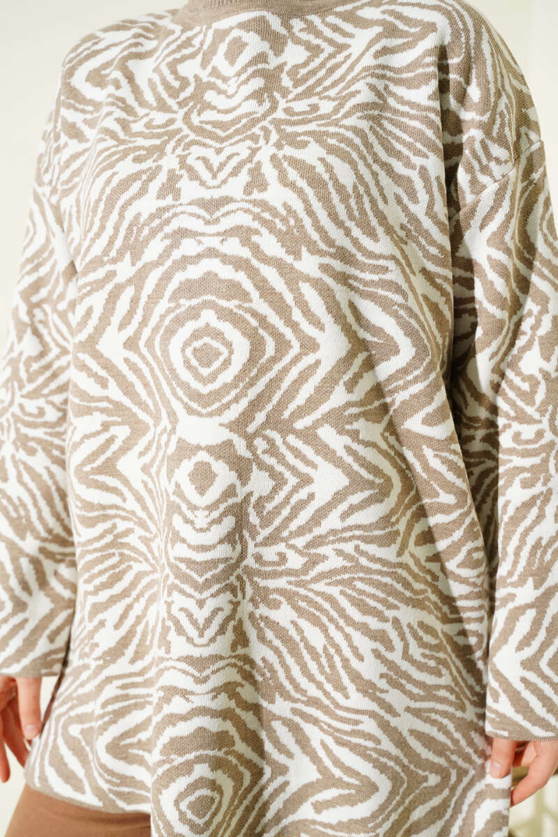 Dik Çizgi Kabartmalı Triko Tunik Vizon