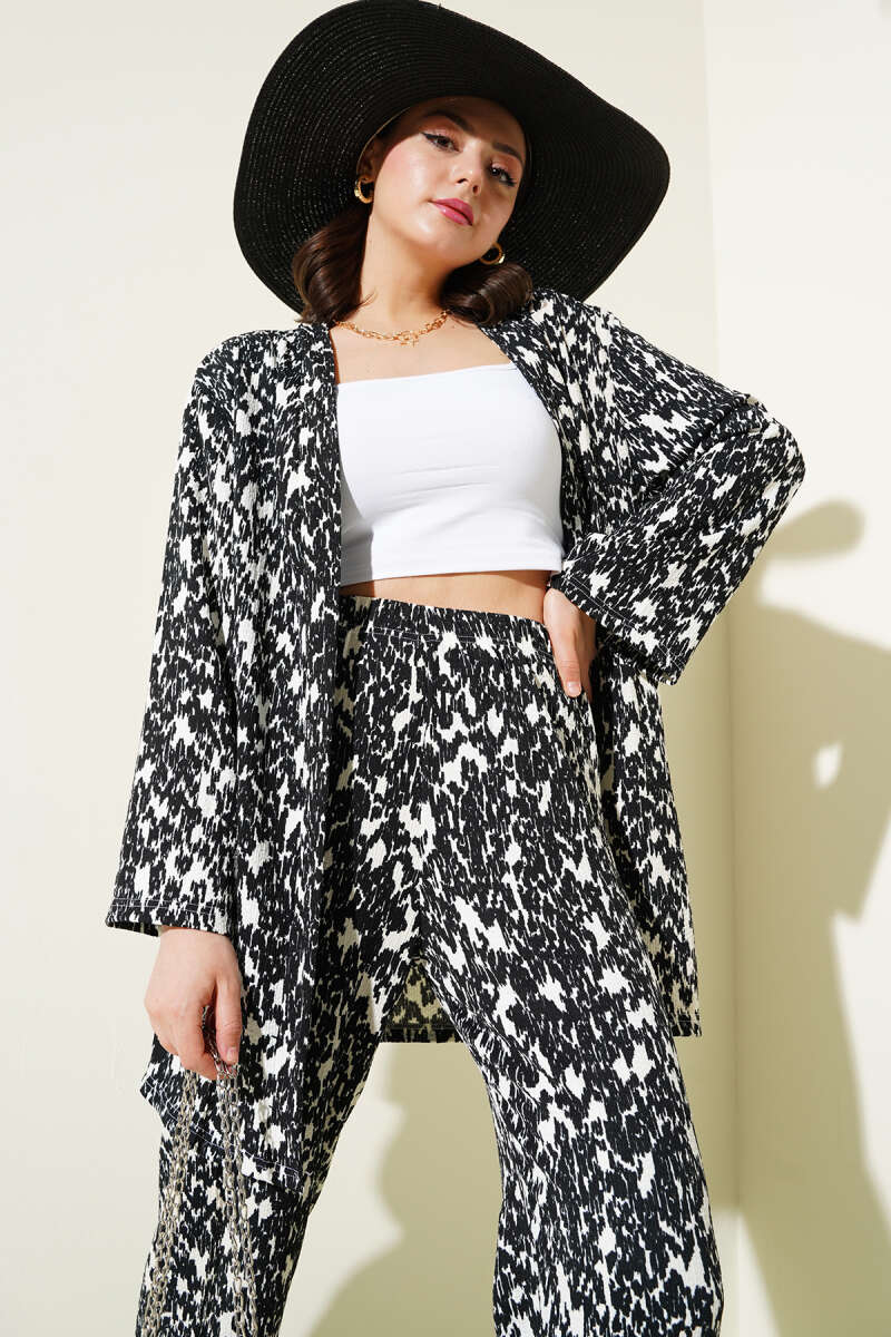 Etnik Desenli İp Bağcıklı İkili Takım Siyah