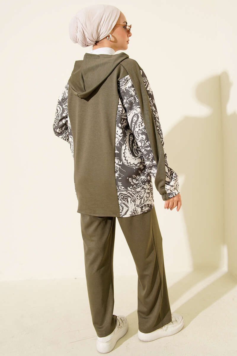 Yaka Çıtçıtlı Kapüşonlu İkili Takım Mor