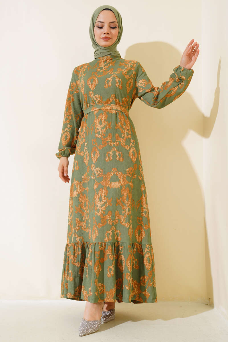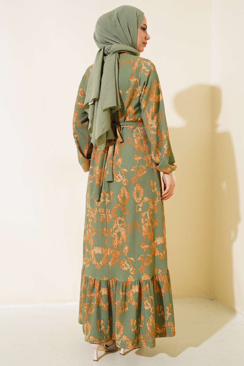 Bilek Bağlamalı Kuşaklı Abiye Elbise Haki