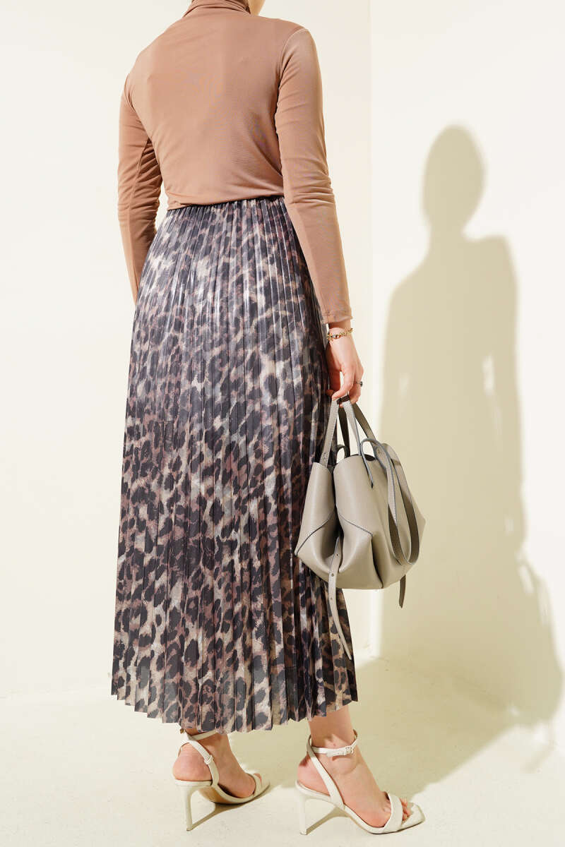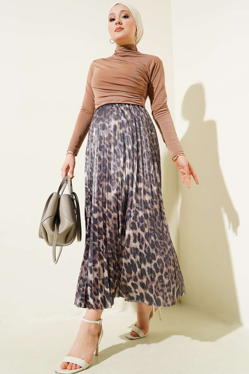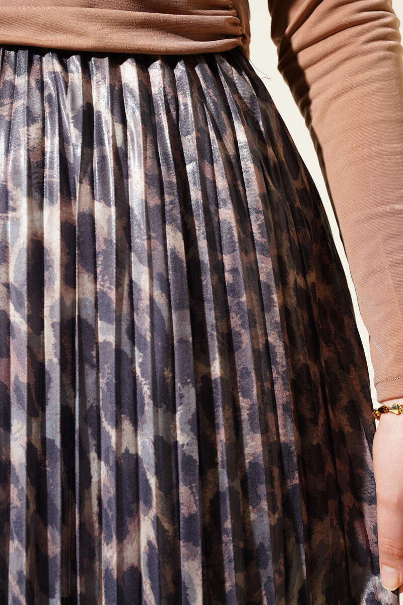 Karışık Desenli Piliseli Etek Silver