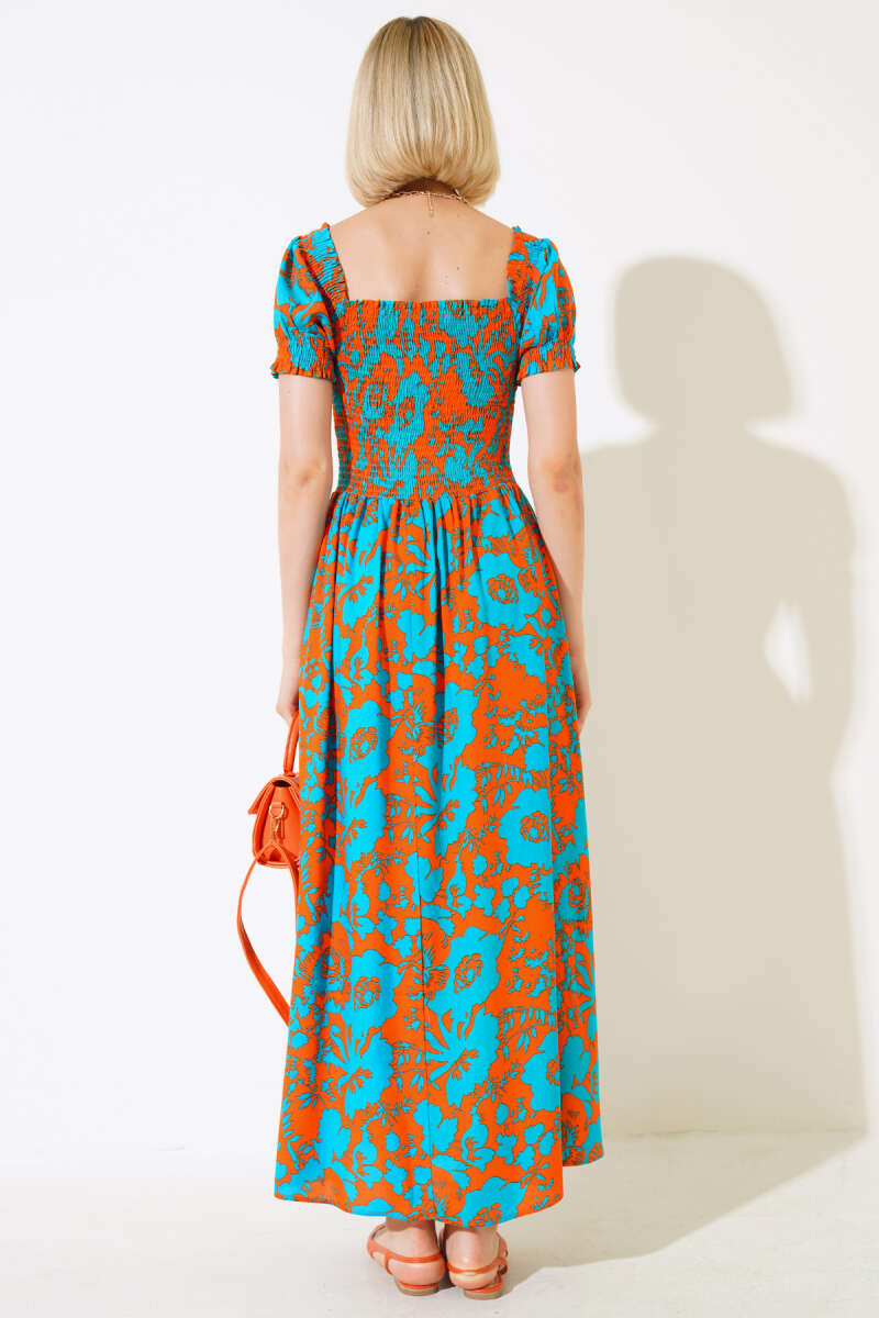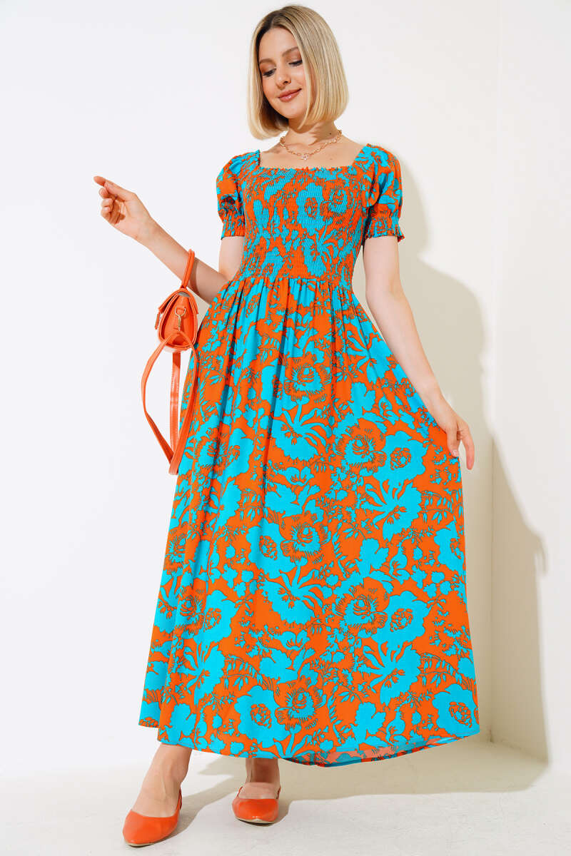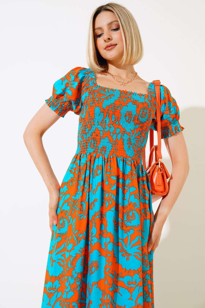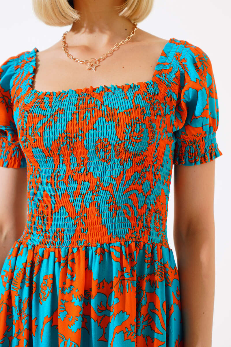 Büyük Çiçek Desenli Triko Tunik Kahve