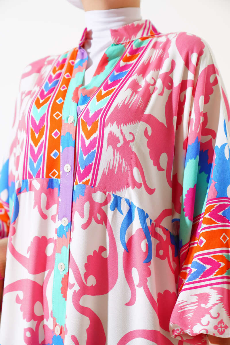 Önü Taş Detaylı Uzun Gömlek Fuşya