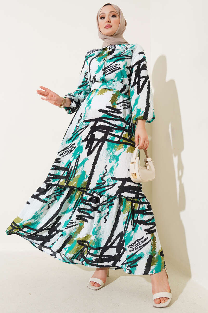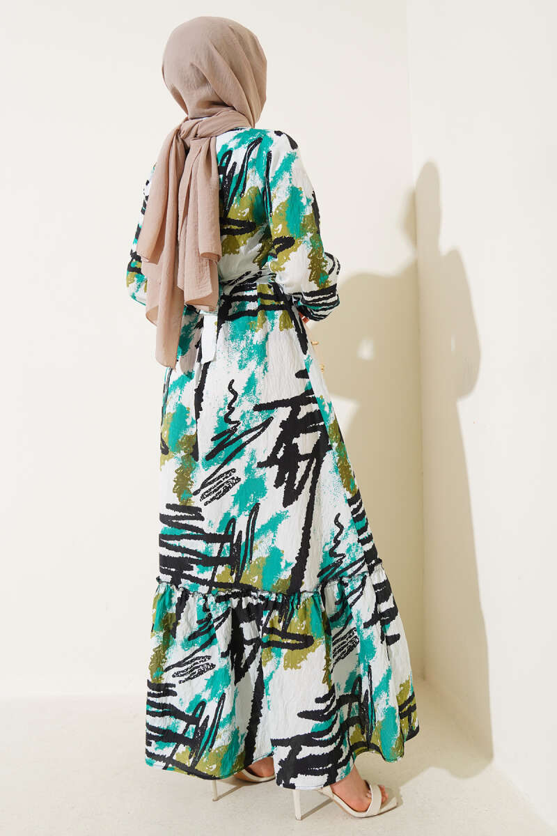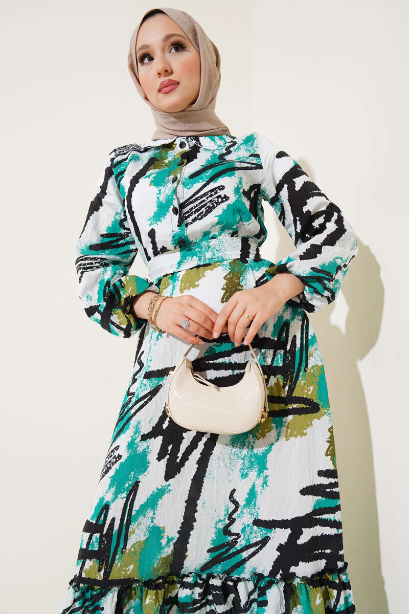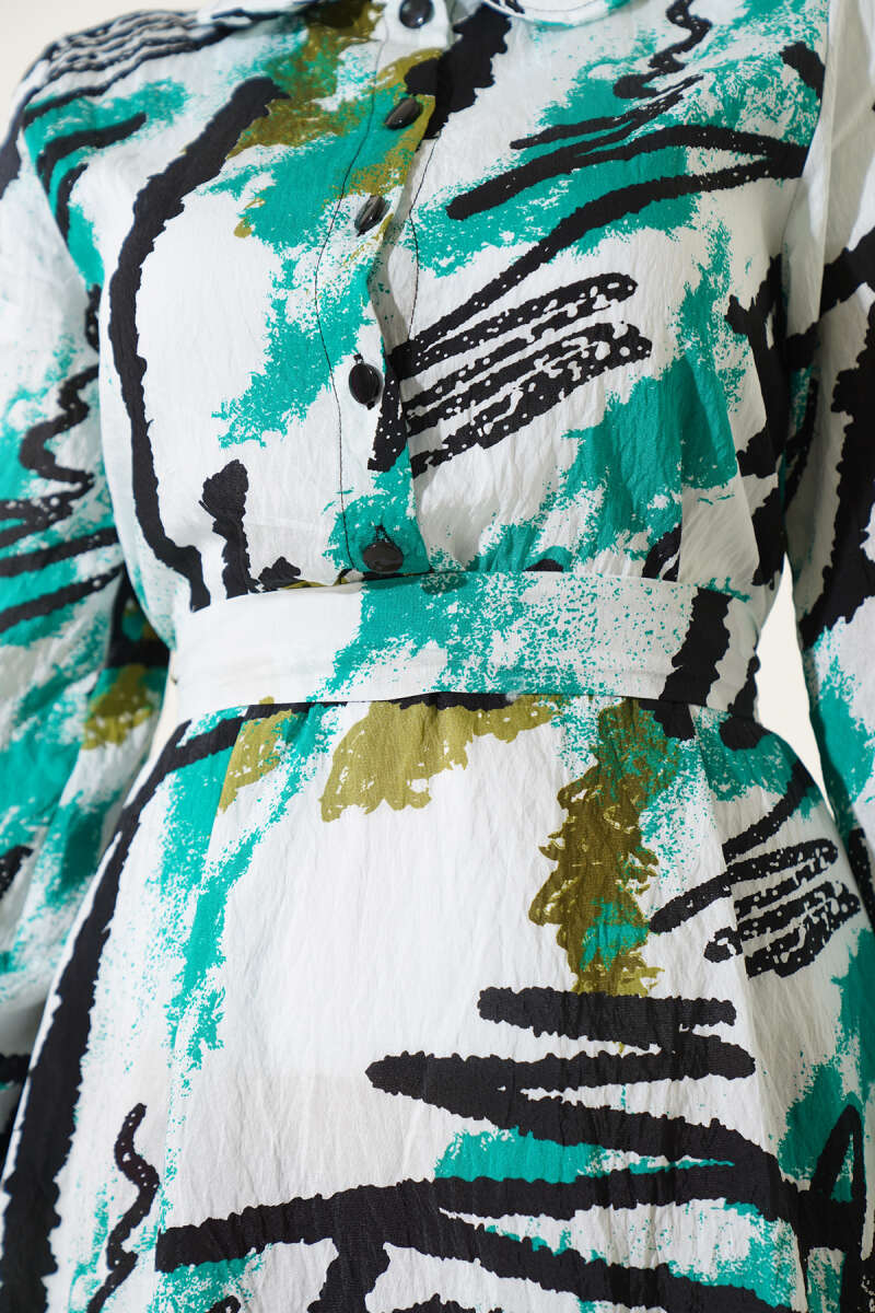 Scuba Pens Detaylı Kemerli Elbise Haki