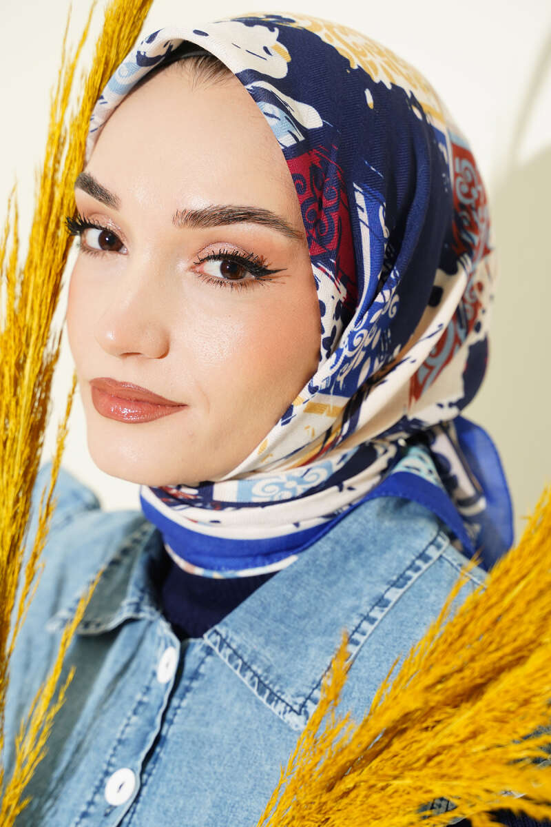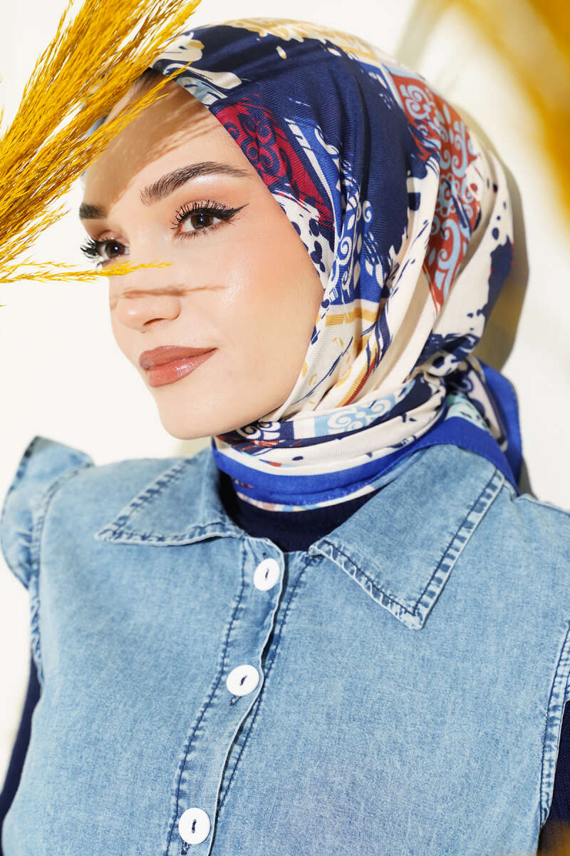 Leopar Desenli Soft Eşarp Lacivert