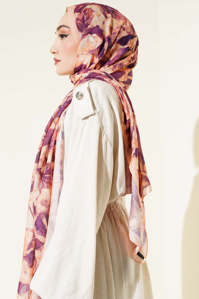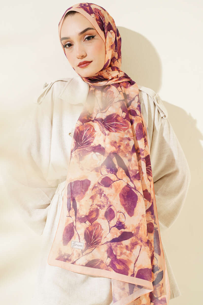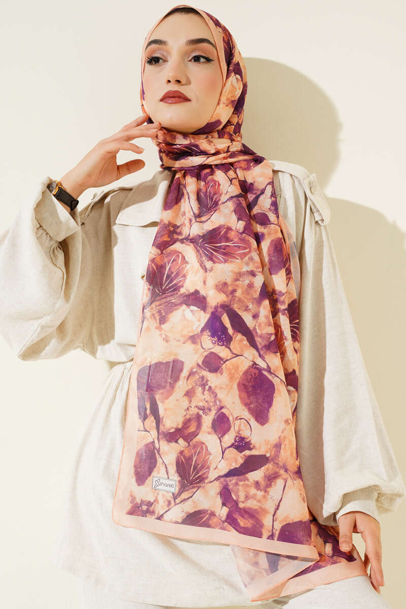 Karışık Yaprak Desenli Şal Mürdüm