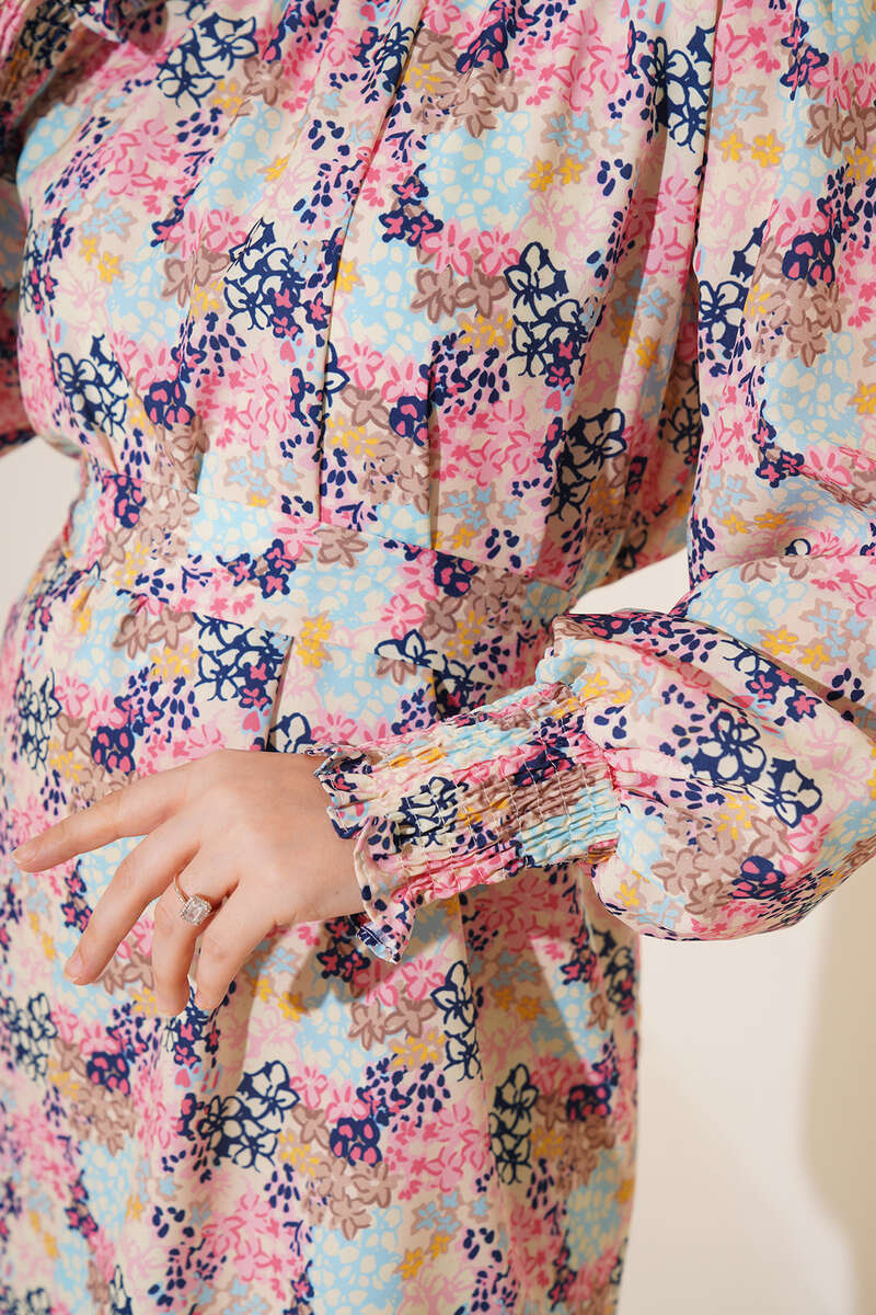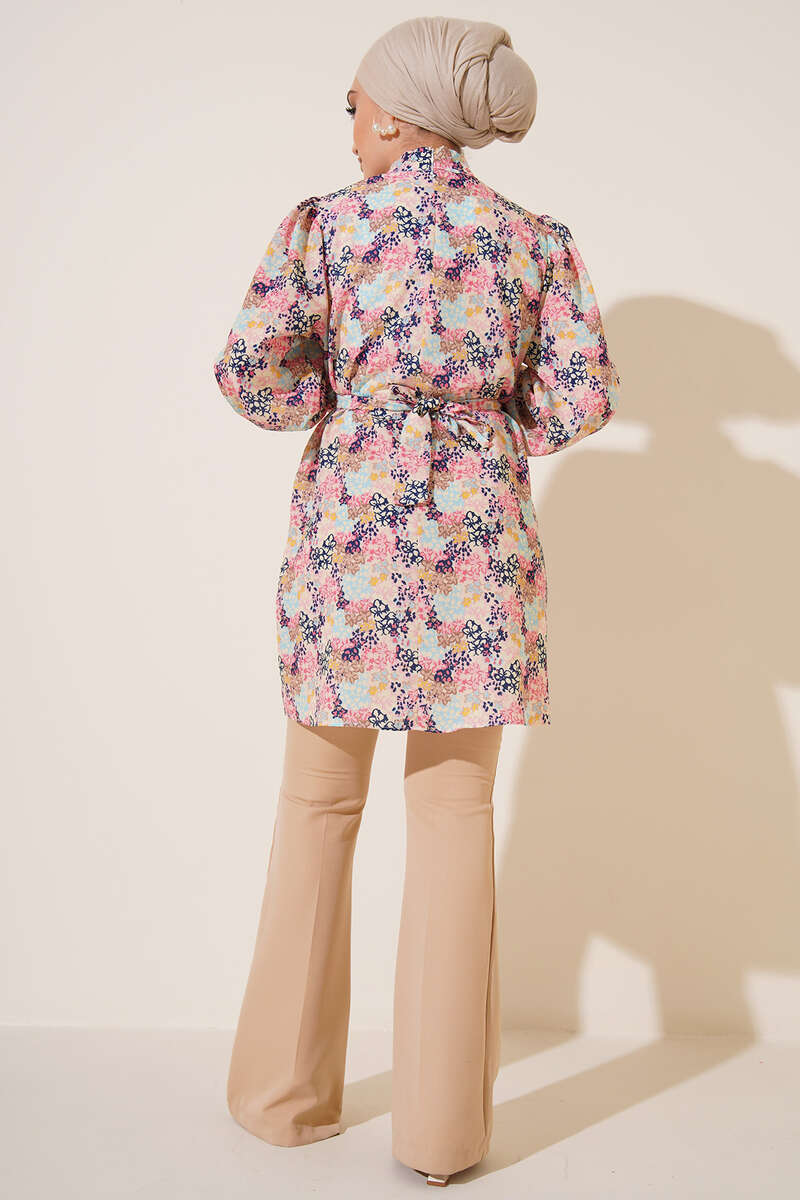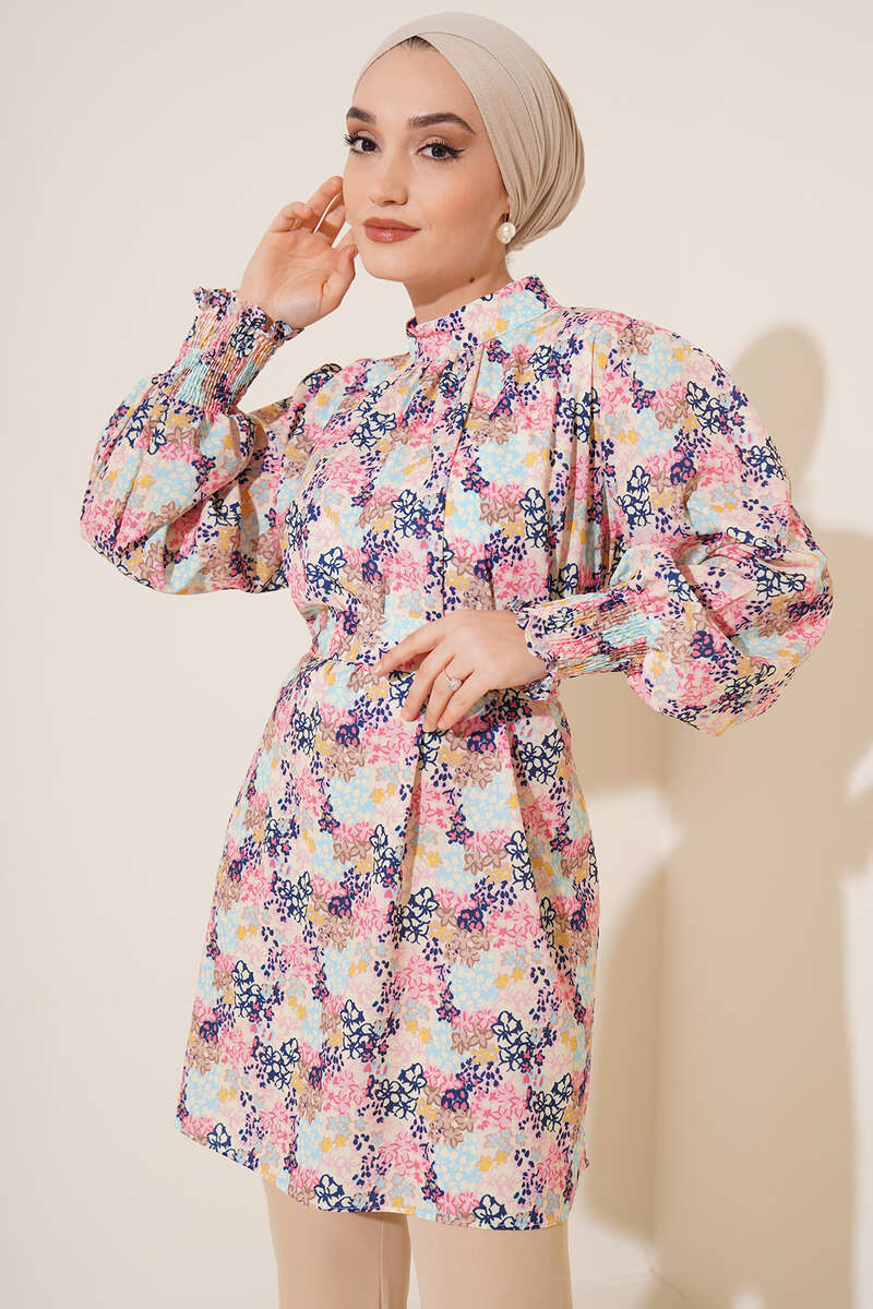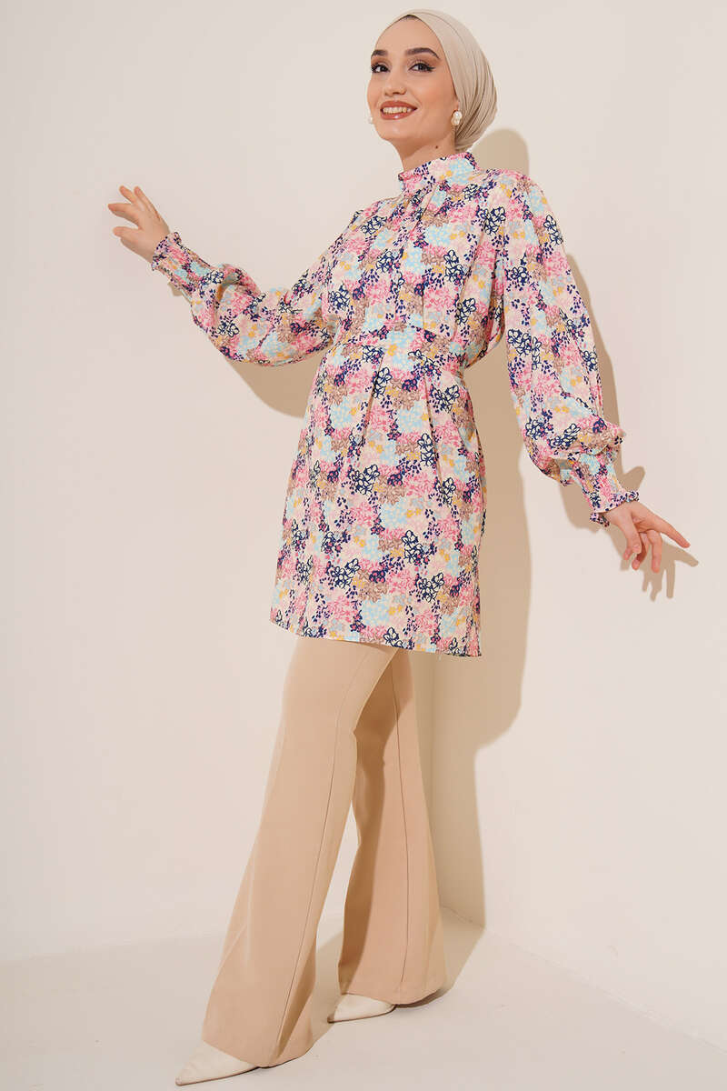 Karma Desen Balon Kol Kuşaklı Tunik Pembe