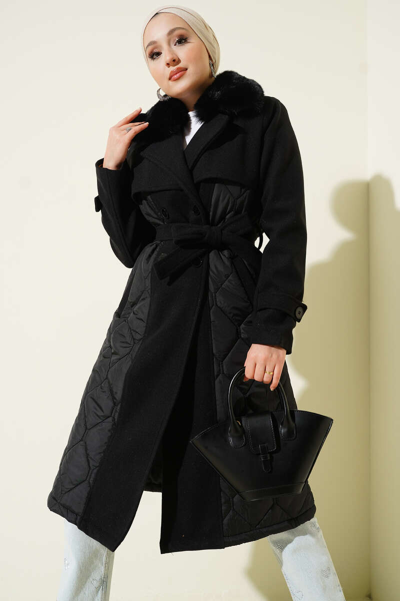 Kapüşonlu Fermuarlı Kapitone Şişme Mont Siyah