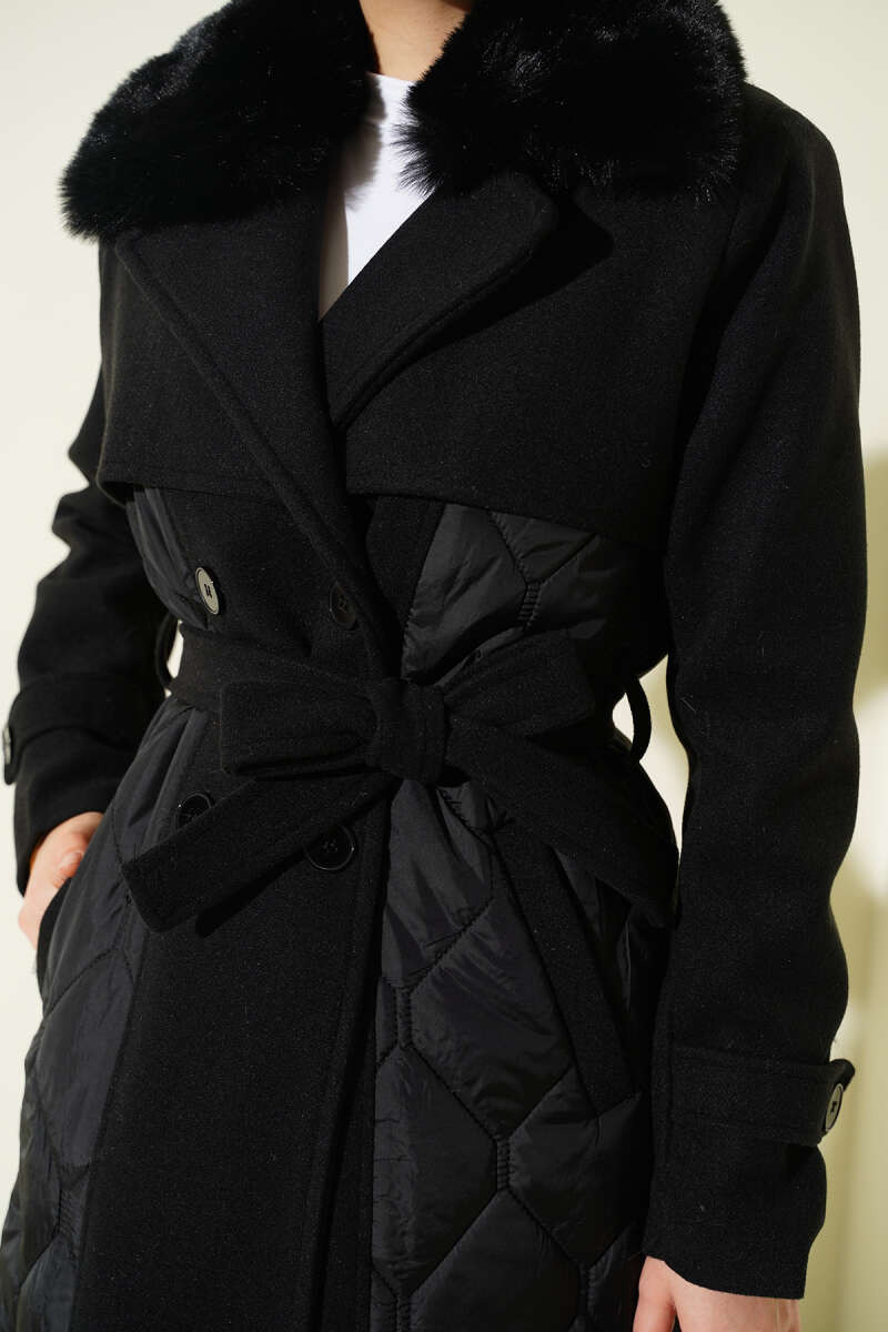 Kaşe Detaylı Yaka Kürklü Kapitone Mont Gri