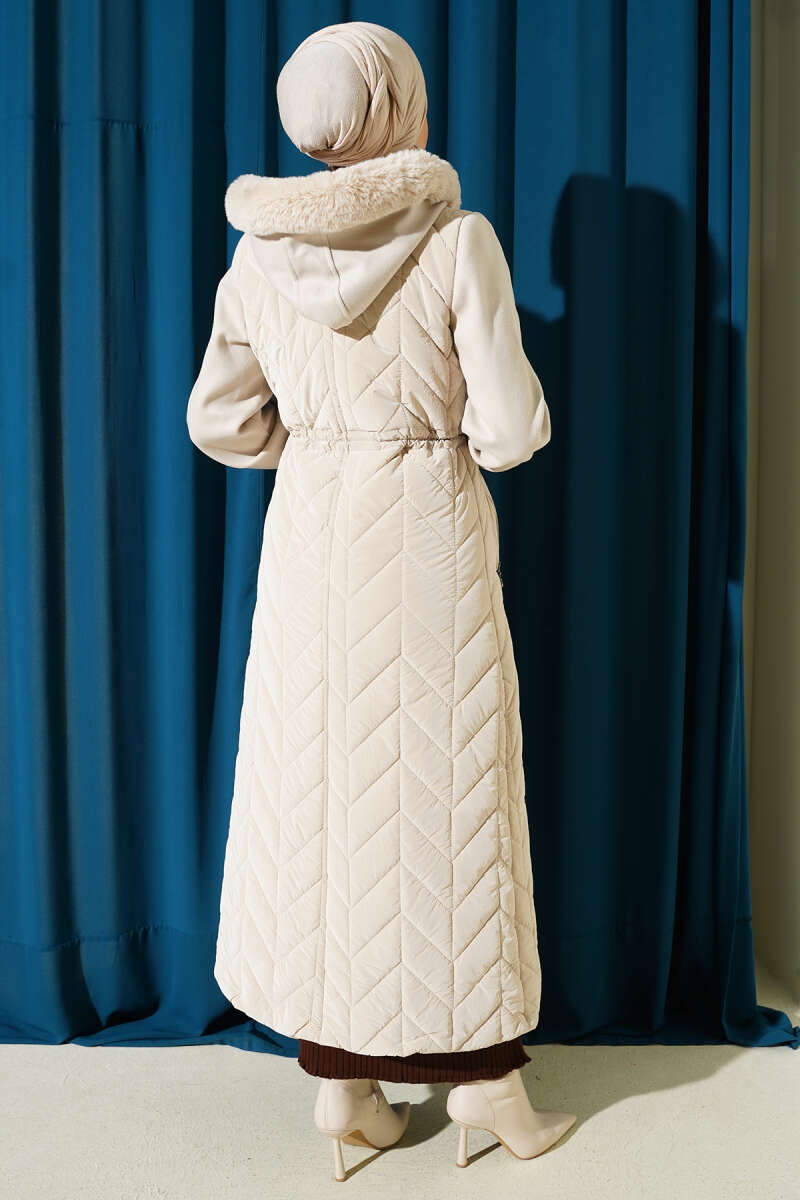 Kürk Detaylı Kapüşonlu Kapitone Mont Taş
