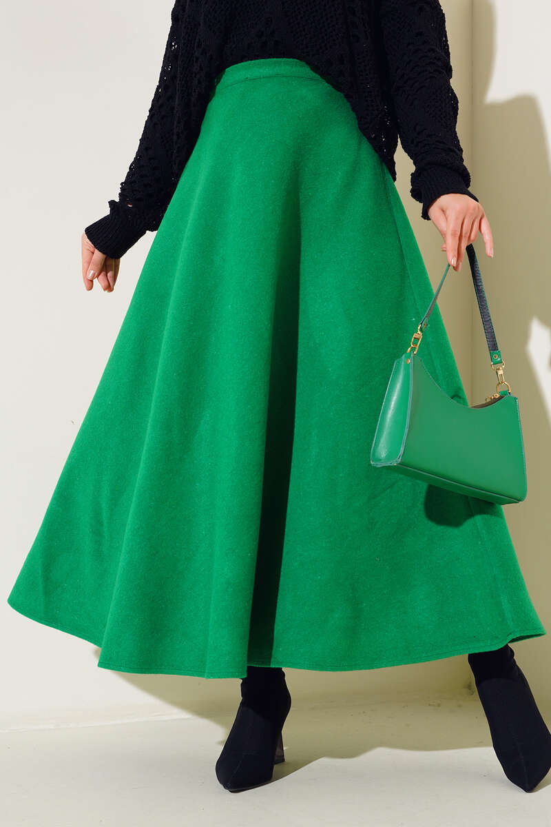 Gömlek ve bluzların tamamlayıcı parçası etekler... Yeni sezon eteğimiz kaşe kumaştır ve kışlıktır. Kloş modele sahip eteğimiz yandan fermuarlıdır. Renk seçenekleri mevcuttur. Kemer aksesuar olarak kullanılmıştır.