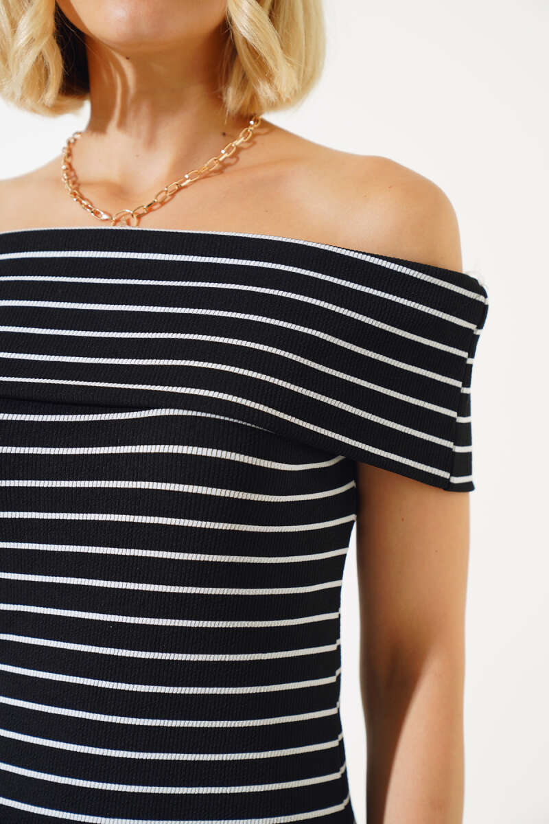 Cepli Çizgi Detaylı Triko Hırka Ekru