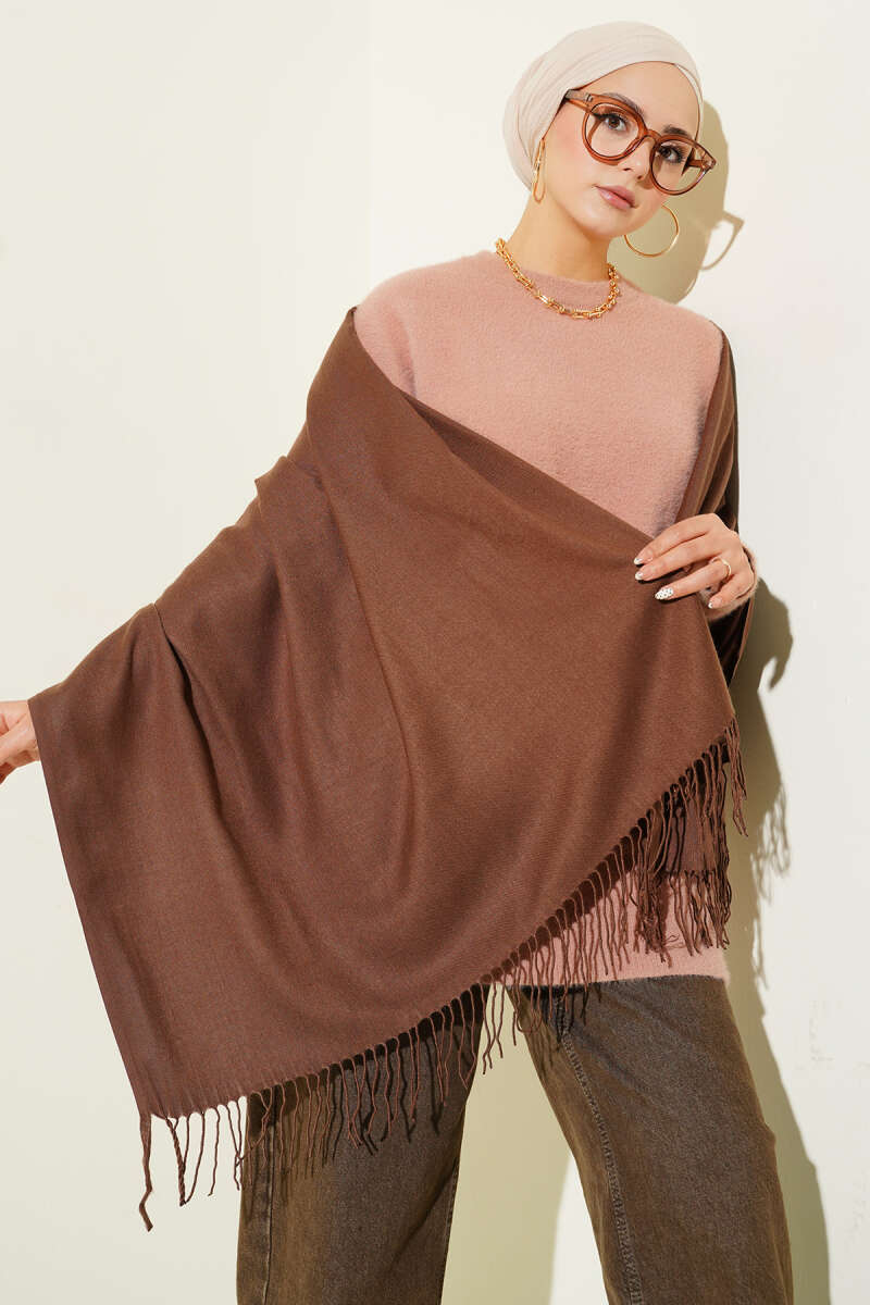 Bel Lastikli Pileli Kırışık Etek Kestane