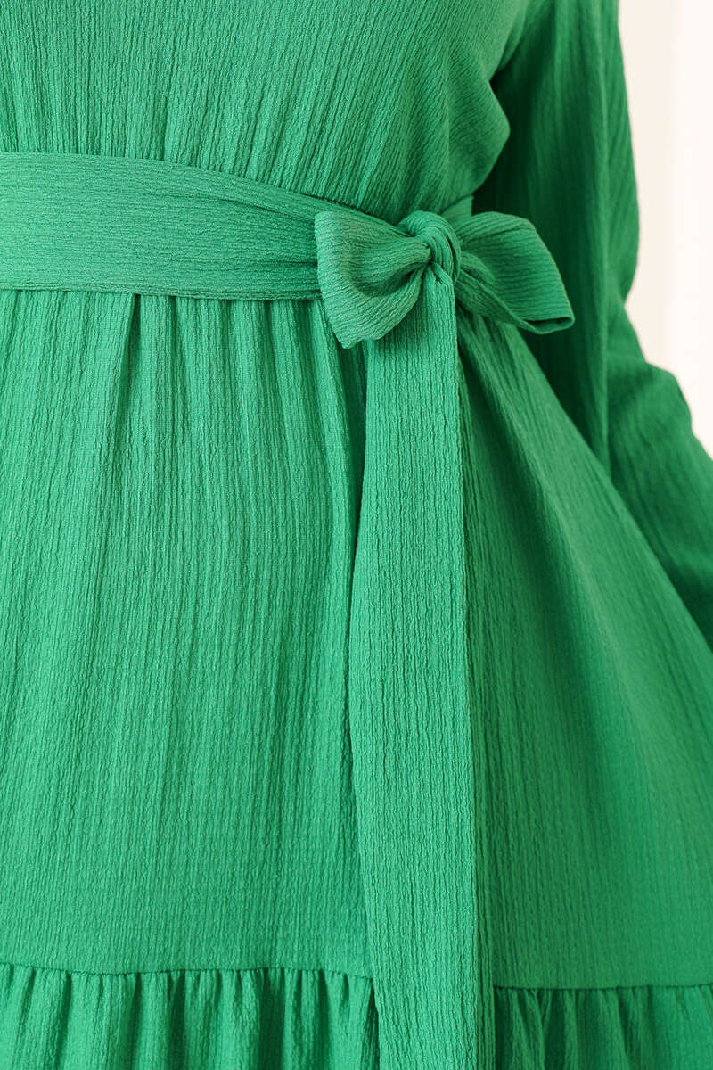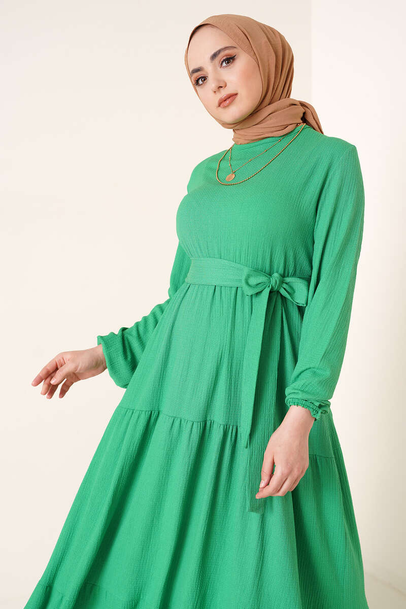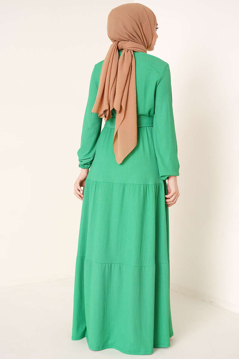 Kat Detaylı Bürümcük Elbise Fıstık Yeşili