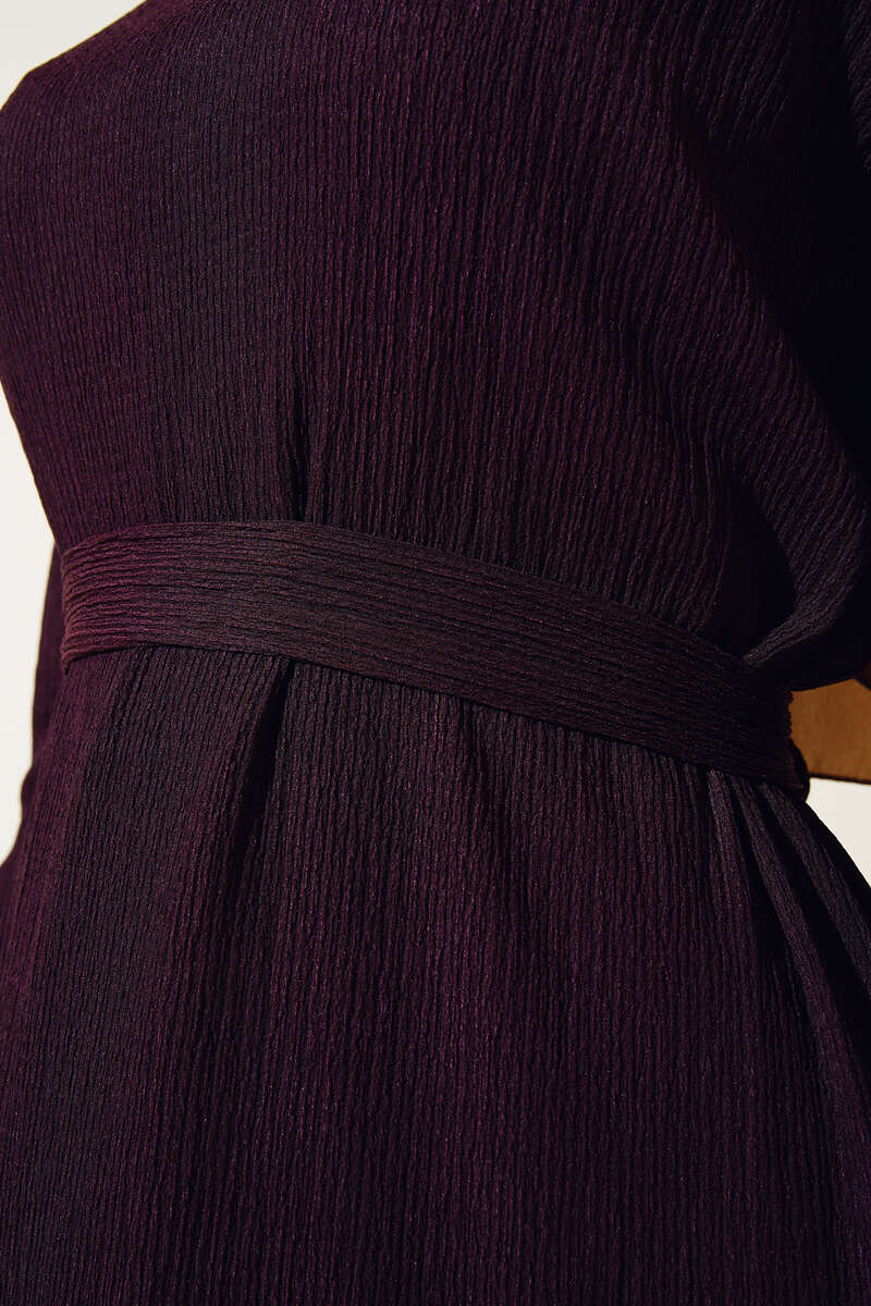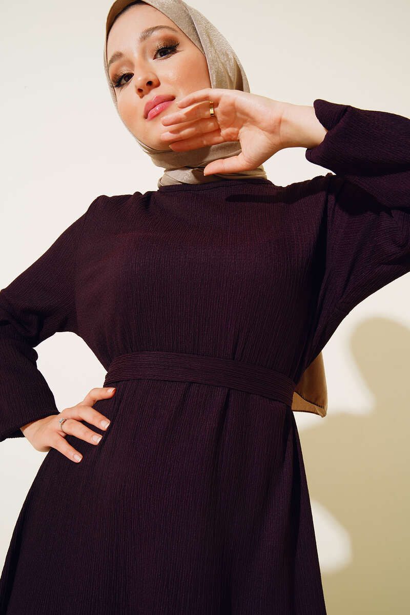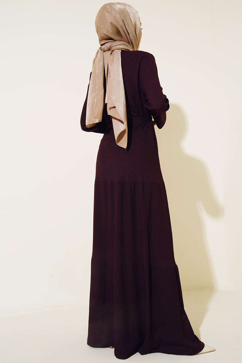 Bel Pensli İp Kuşaklı Elbise Bordo