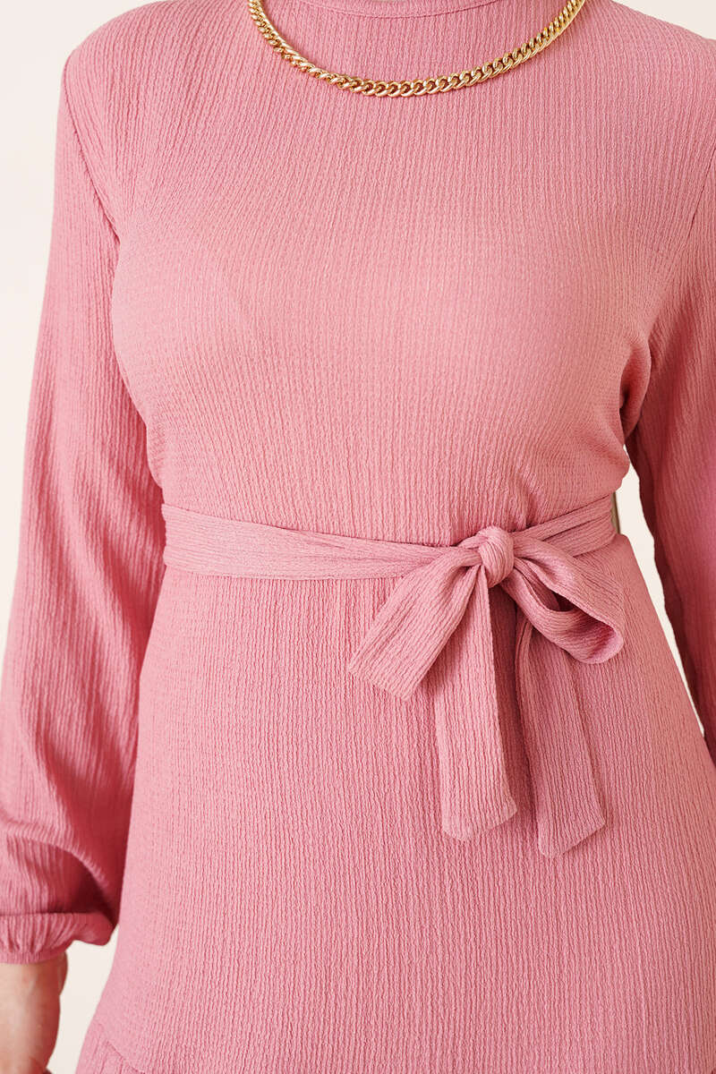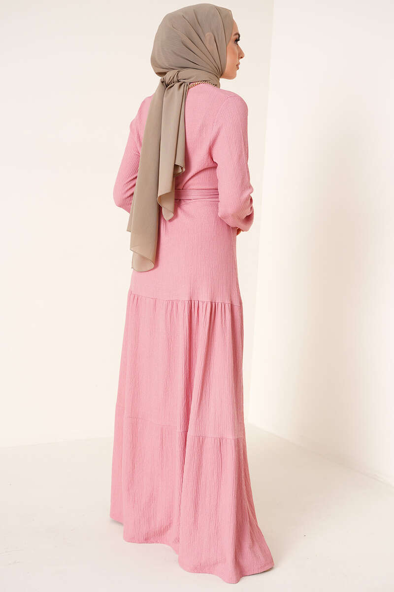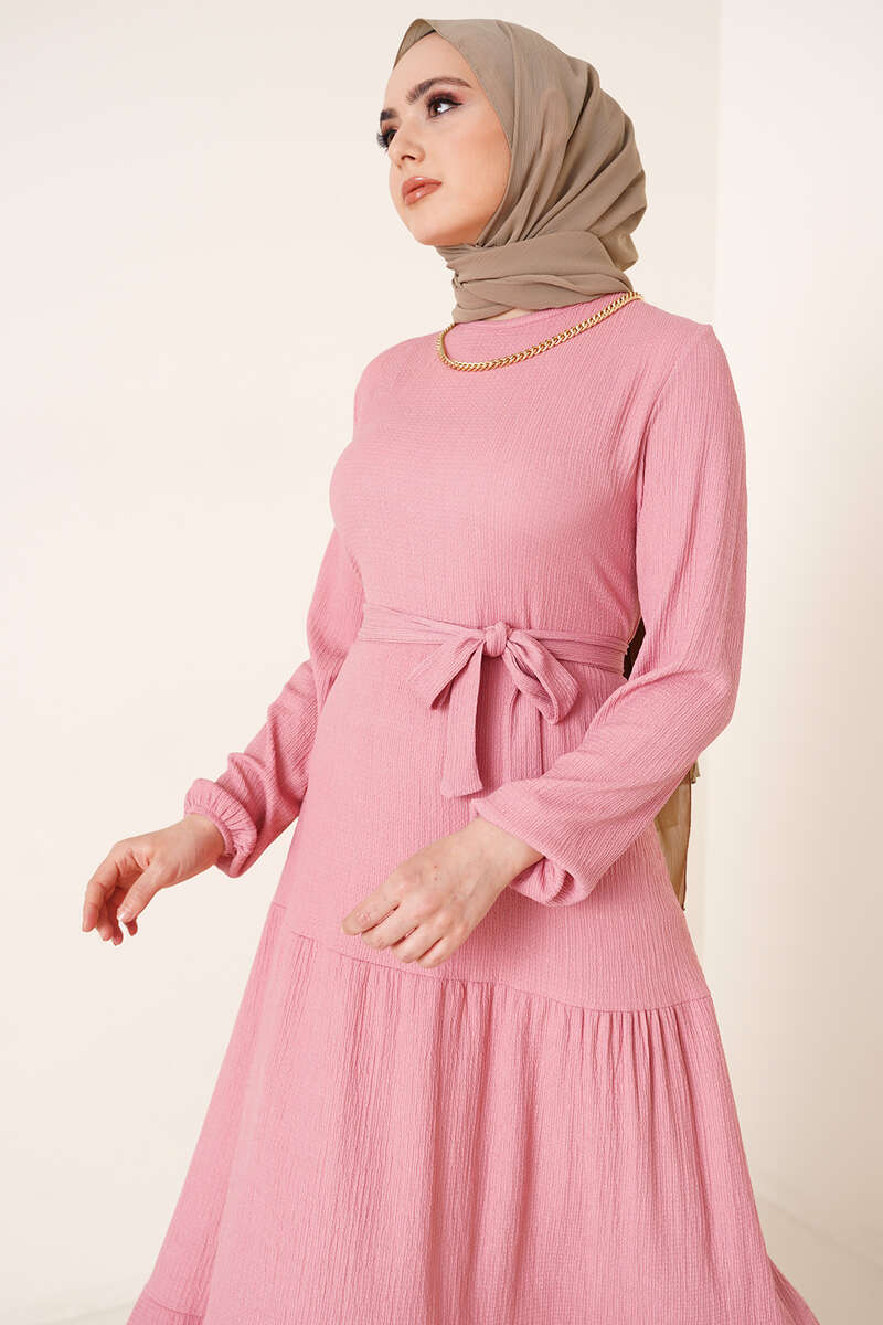 Yeni sezon elbisemiz sade görünümüyle sizler için geldi. Elbisemiz bürümcük yapıya sahiptir. Kuşağı bulunmaktadır. Bilekleri lastiklidir. Kat detaylıdır. Her ortamda rahatlıkla giyebilirsiniz. Farklı renk seçenekleri mevcuttur.