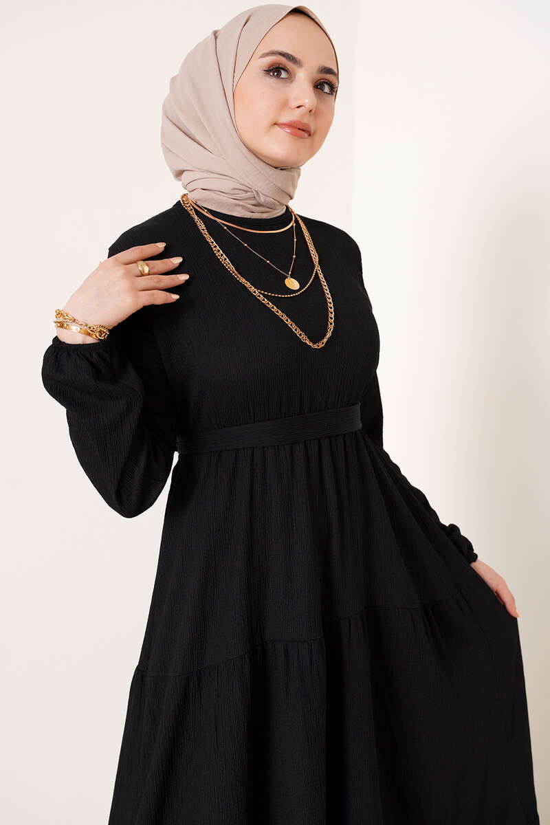 Yeni sezon elbisemiz sade görünümüyle sizler için geldi. Elbisemiz bürümcük yapıya sahiptir. Kuşağı bulunmaktadır. Bilekleri lastiklidir. Kat detaylıdır. Her ortamda rahatlıkla giyebilirsiniz. Farklı renk seçenekleri mevcuttur.