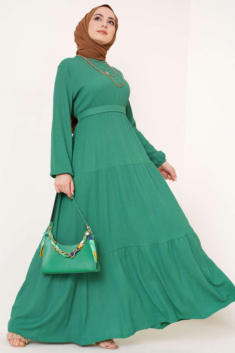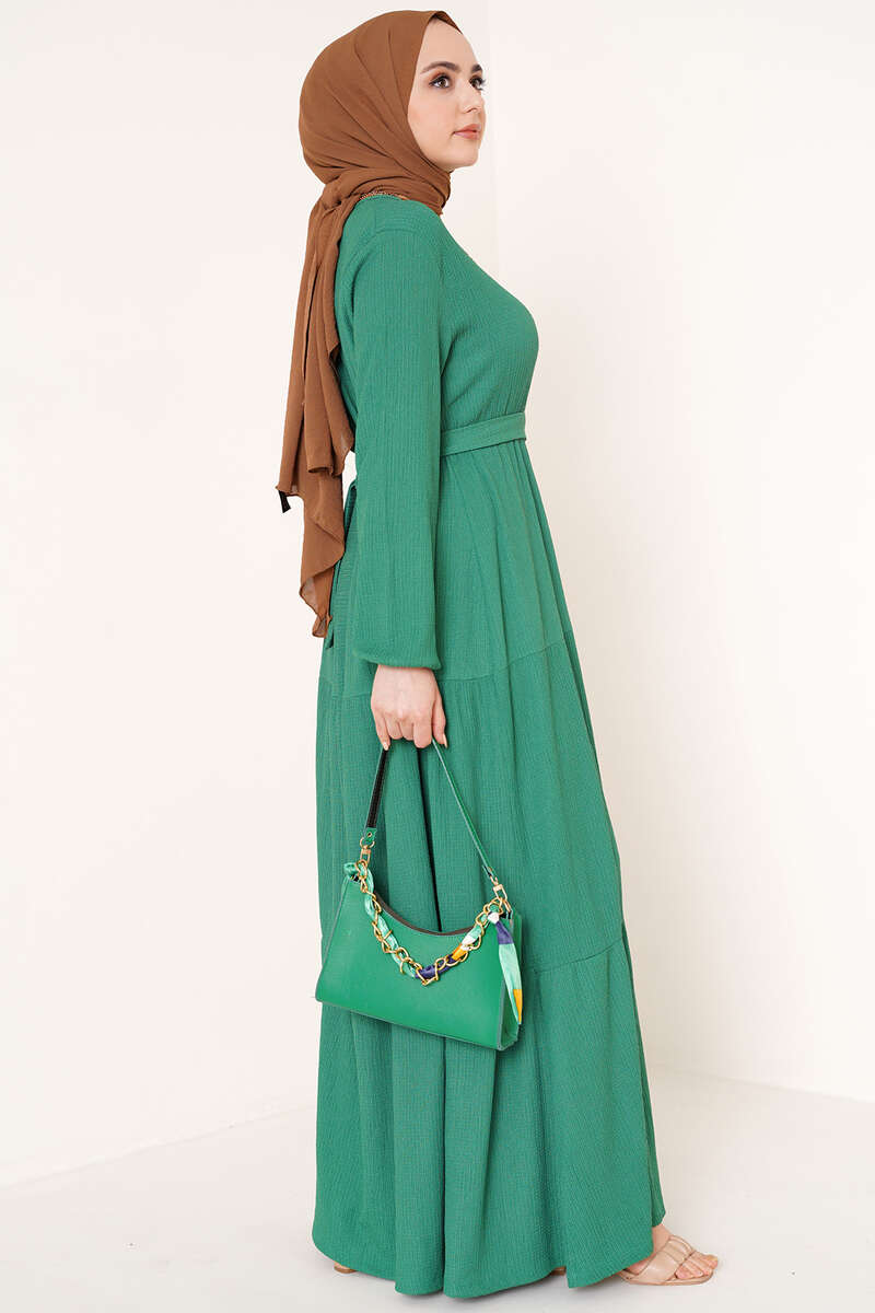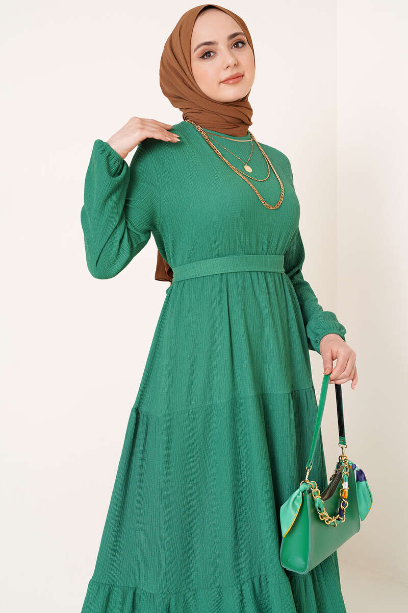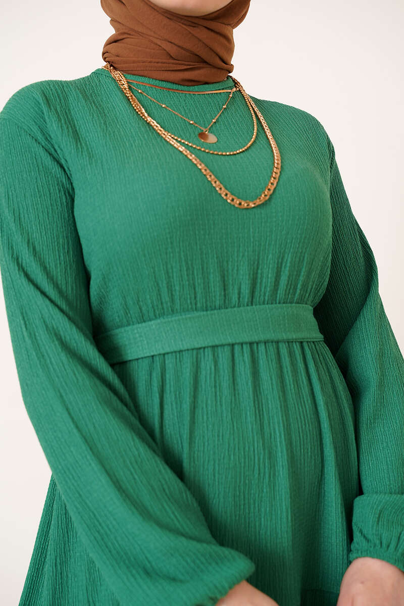 Yeni sezon elbisemiz sade görünümüyle sizler için geldi. Elbisemiz bürümcük yapıya sahiptir. Kuşağı bulunmaktadır. Bilekleri lastiklidir. Kat detaylıdır. Her ortamda rahatlıkla giyebilirsiniz. Farklı renk seçenekleri mevcuttur.