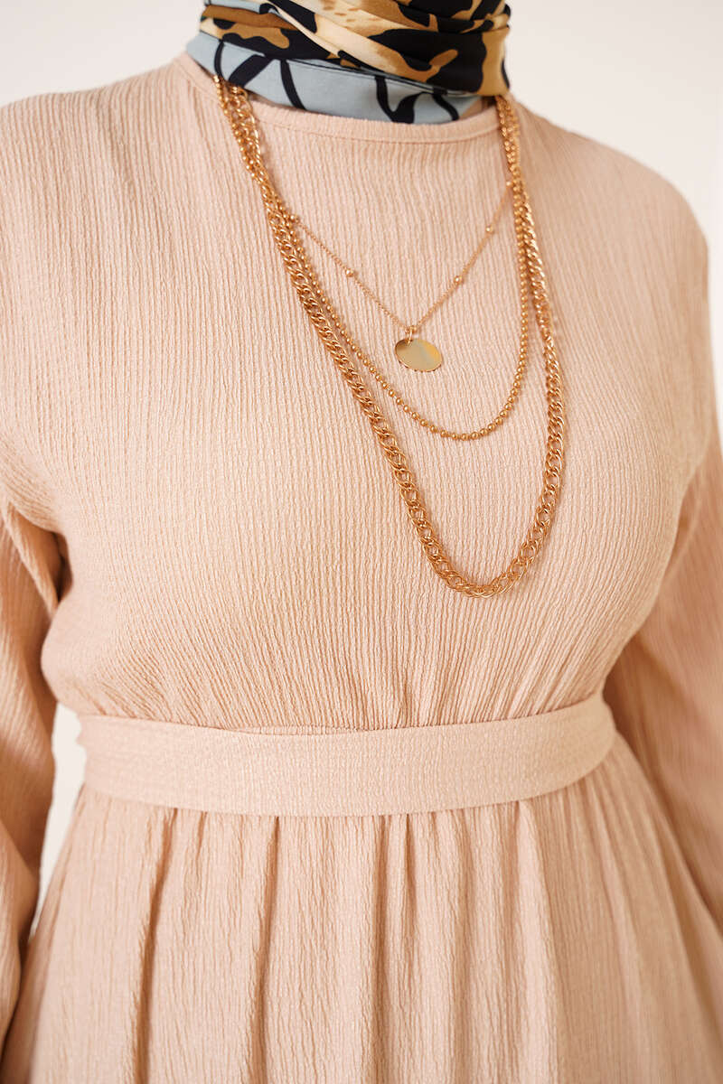 Yeni sezon elbisemiz sade görünümüyle sizler için geldi. Elbisemiz bürümcük yapıya sahiptir. Kuşağı bulunmaktadır. Bilekleri lastiklidir. Kat detaylıdır. Her ortamda rahatlıkla giyebilirsiniz. Farklı renk seçenekleri mevcuttur.