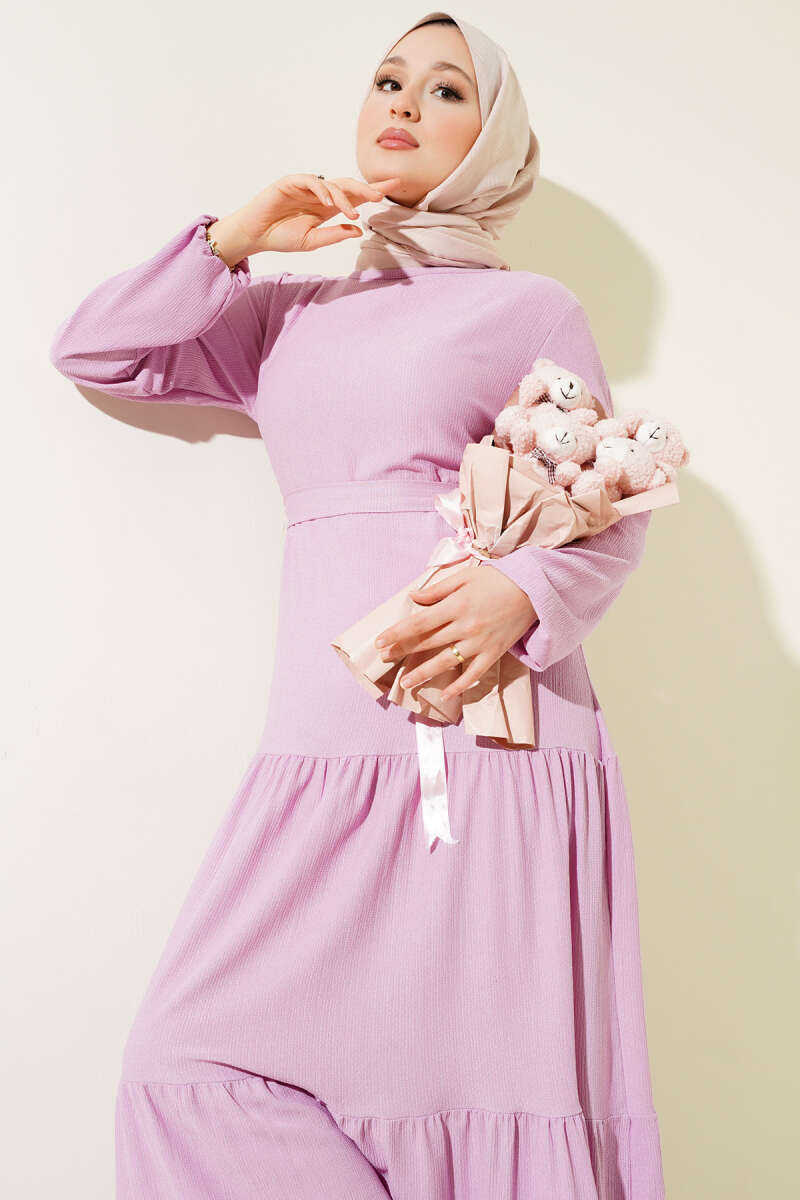 Gül Detaylı Pelerinli Abiye Elbise Mor