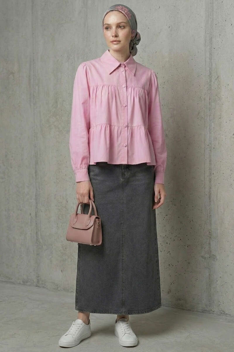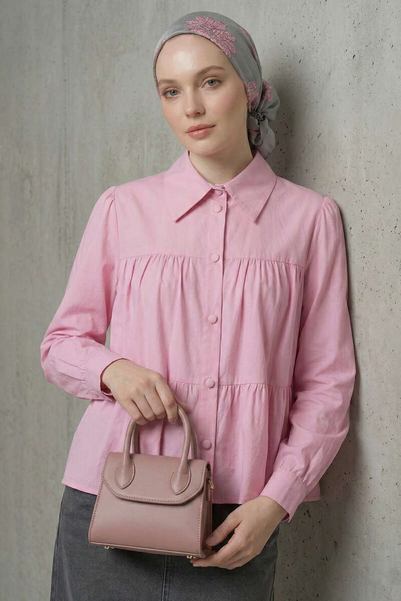 Kat Kat Detaylı Büzgülü Gömlek Pembe