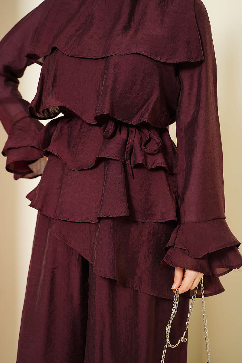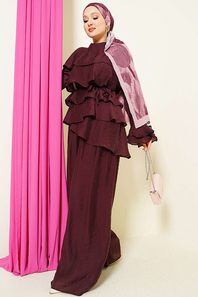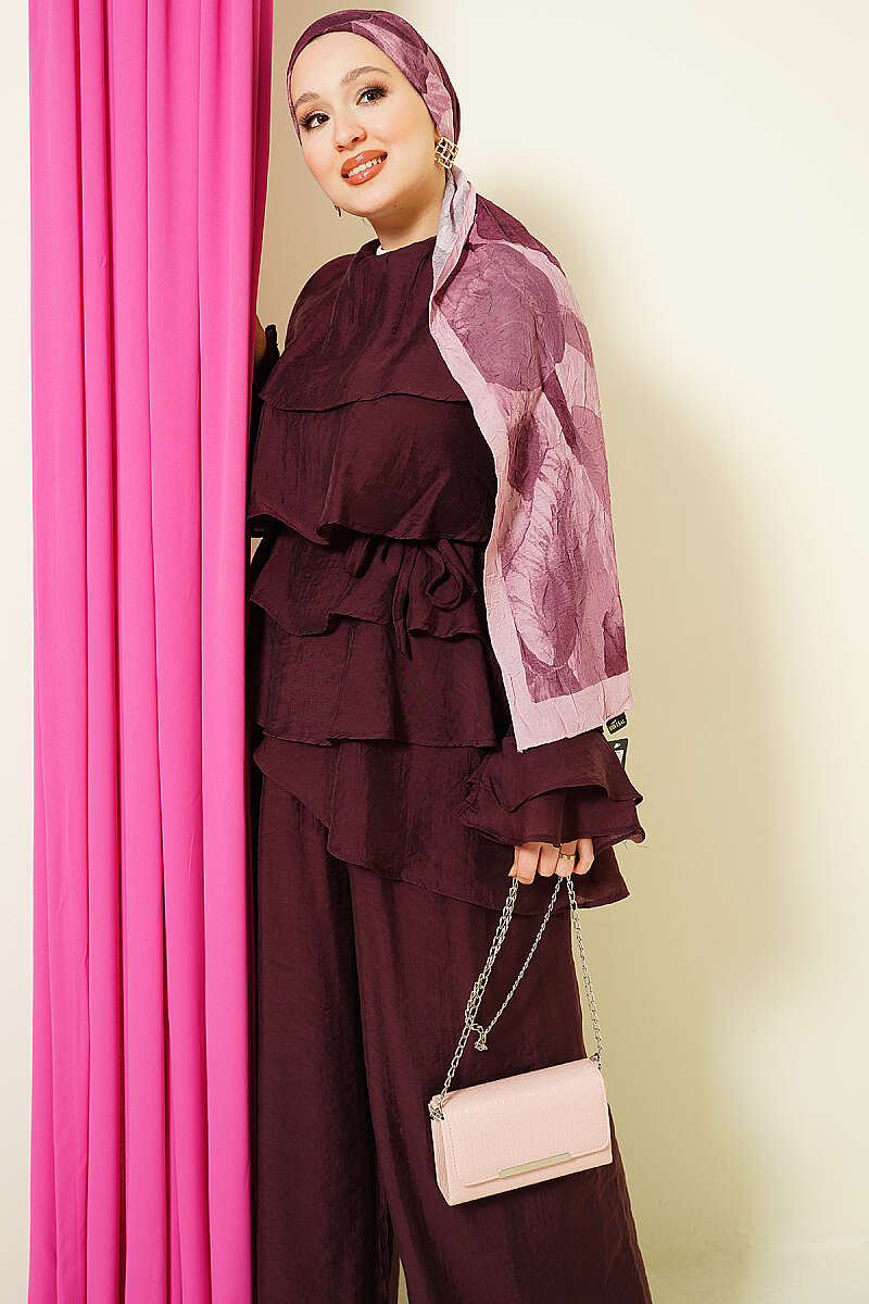 Kat Kat Fırfırlı Tunik İkili Takım Bordo