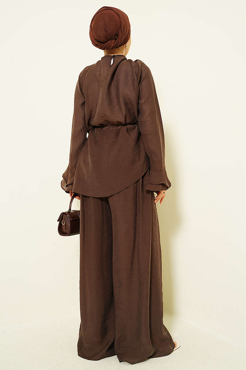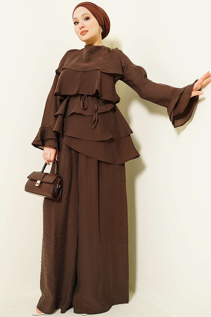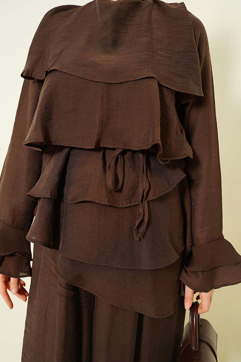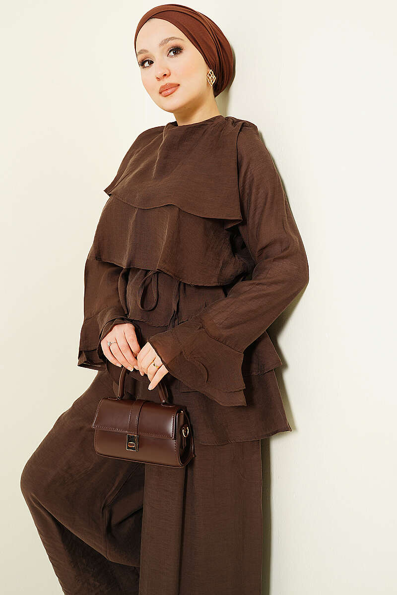 Kat Kat Fırfırlı Tunik İkili Takım Kahve