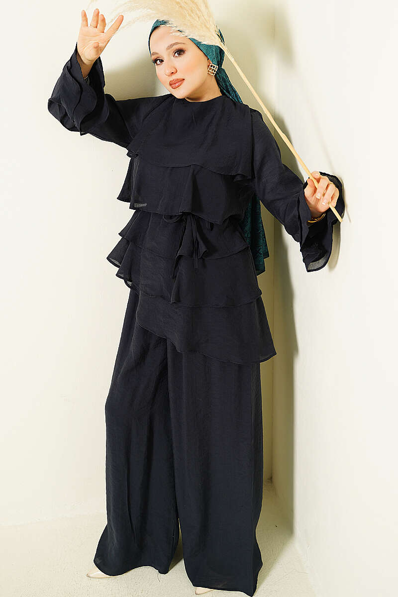 Kat Kat Fırfırlı Tunik İkili Takım Lacivert