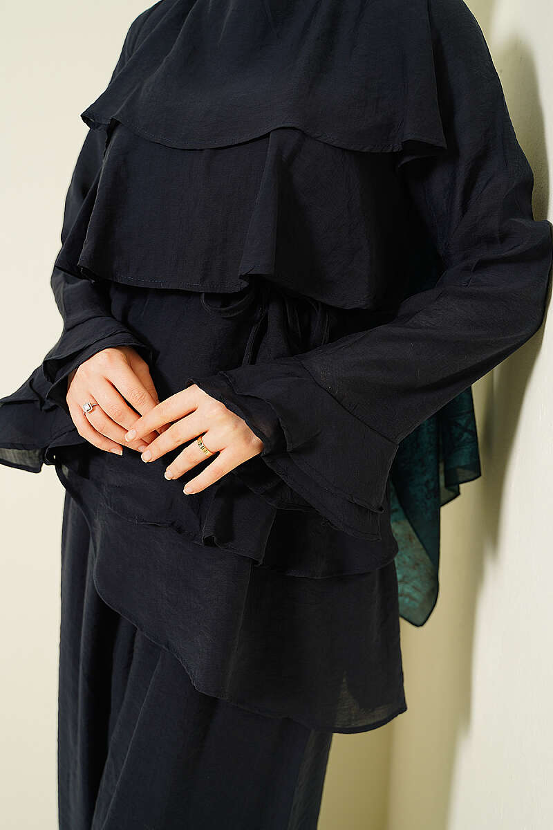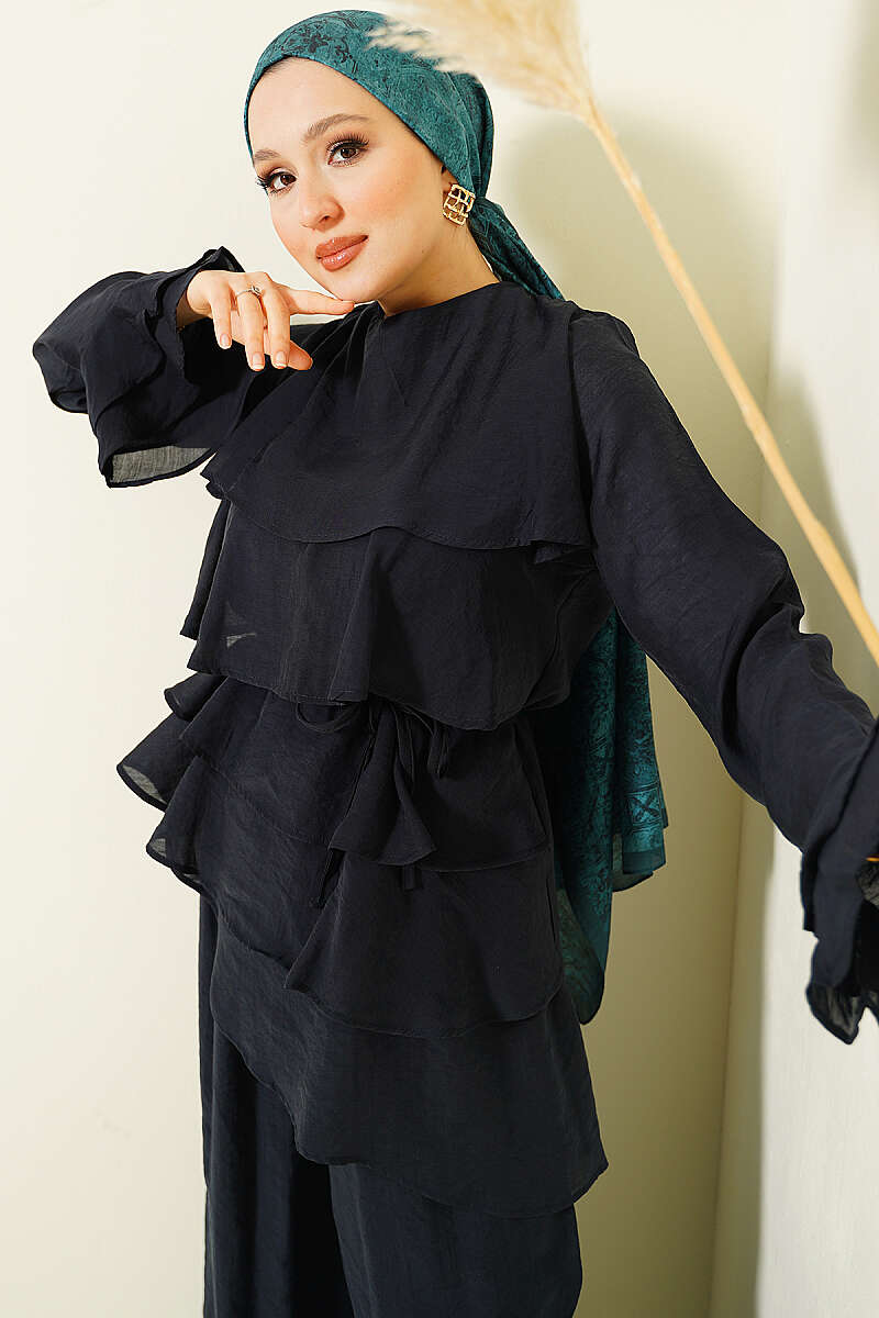Kat Kat Fırfırlı Tunik İkili Takım Siyah