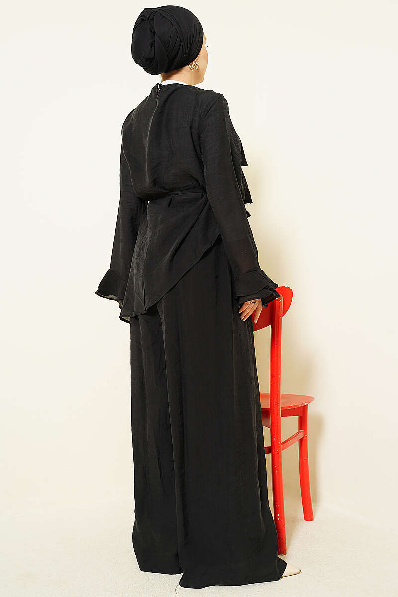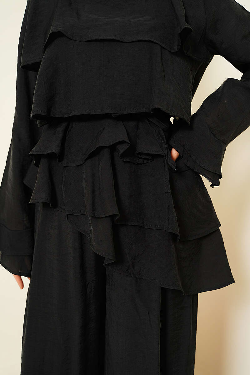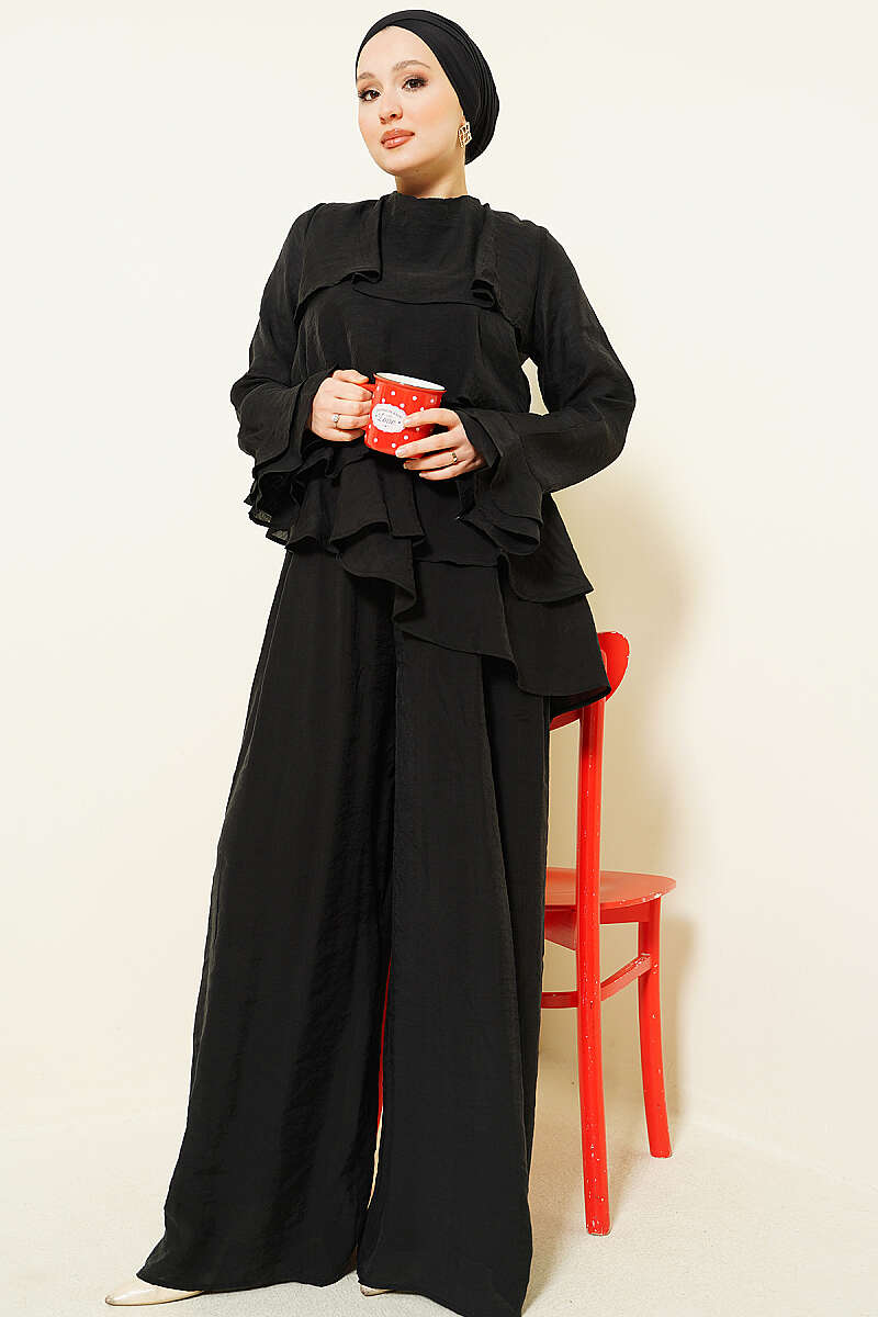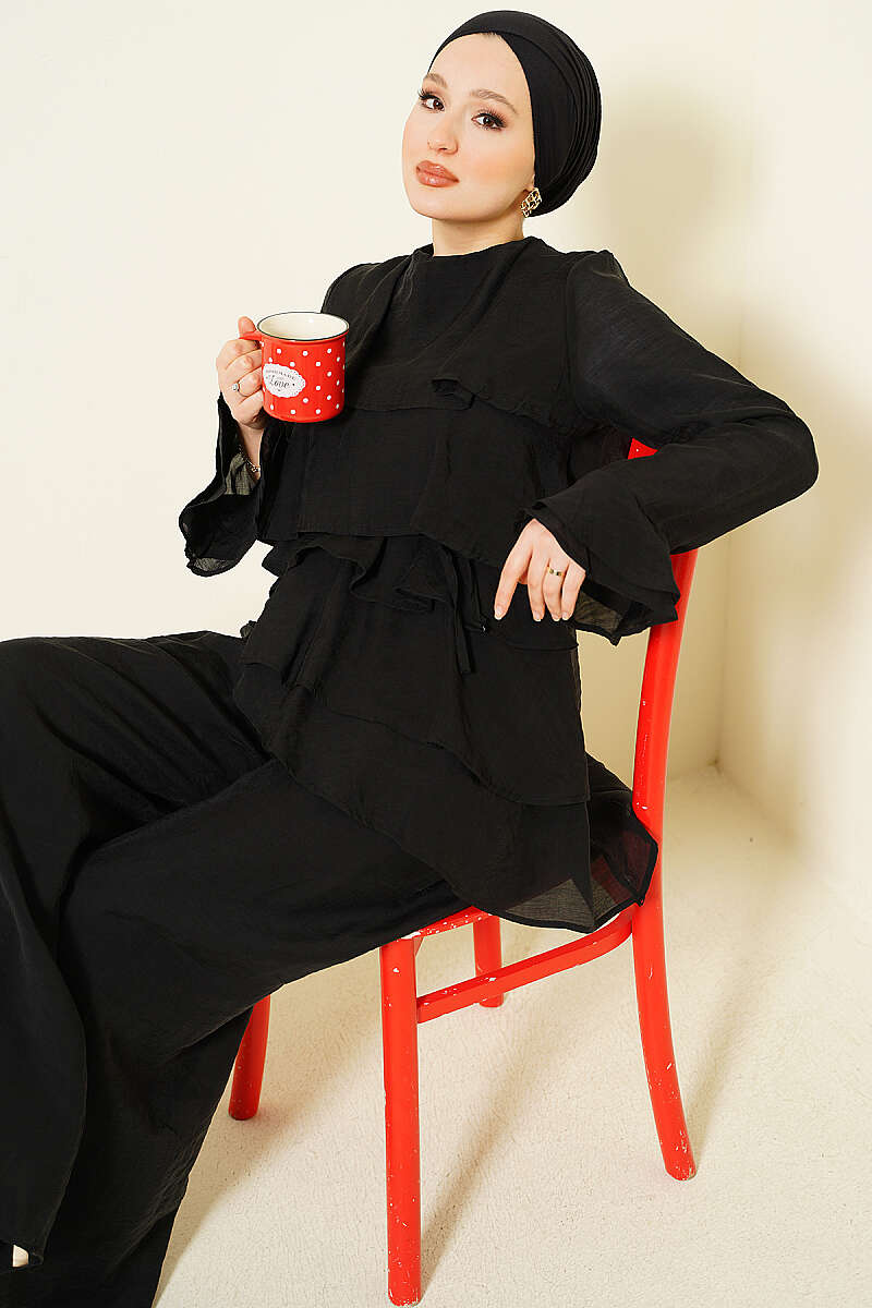 Kat Kat Fırfırlı Tunik İkili Takım Siyah