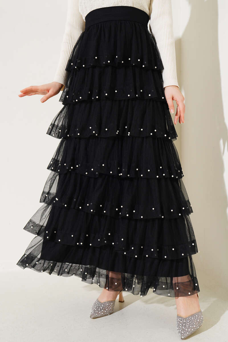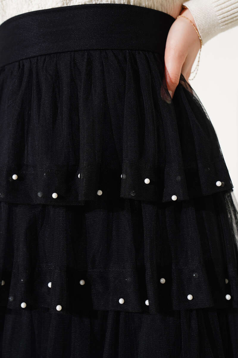 Etek Ucu Güpürlü Kloş Etek Siyah