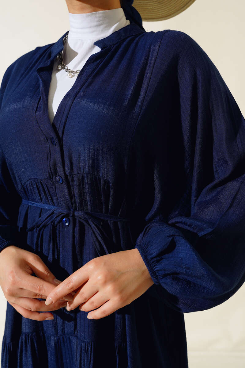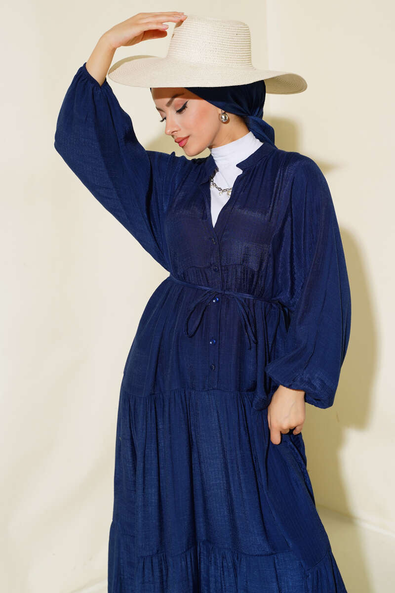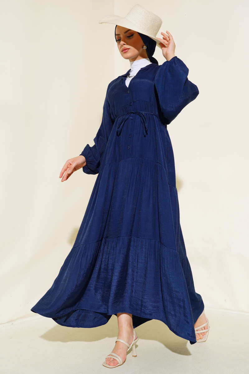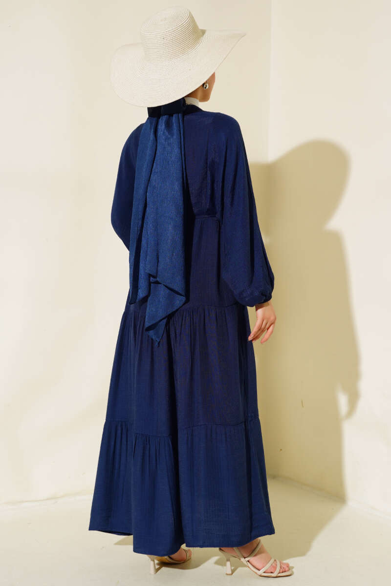 Bel Büzgü Detaylı Abiye Elbise Lacivert