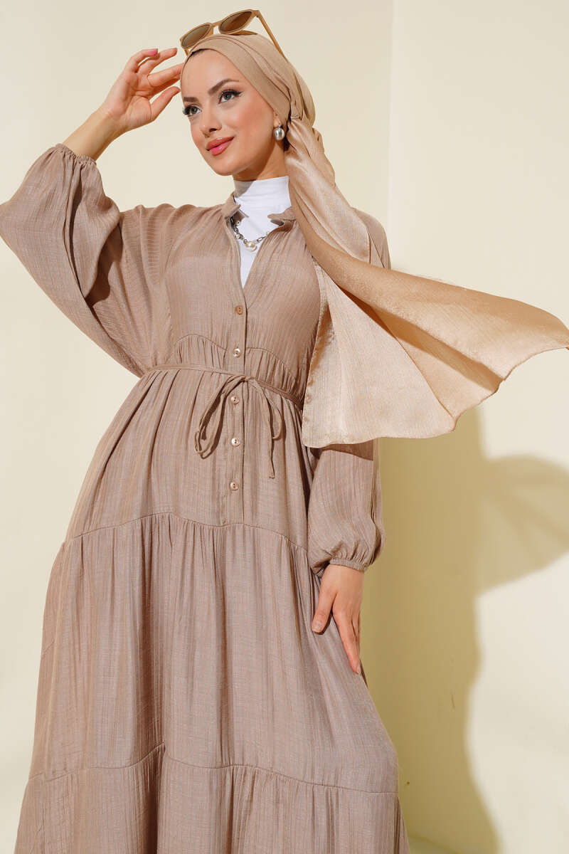 Kat Kat Salaş Keten Elbise Vizon